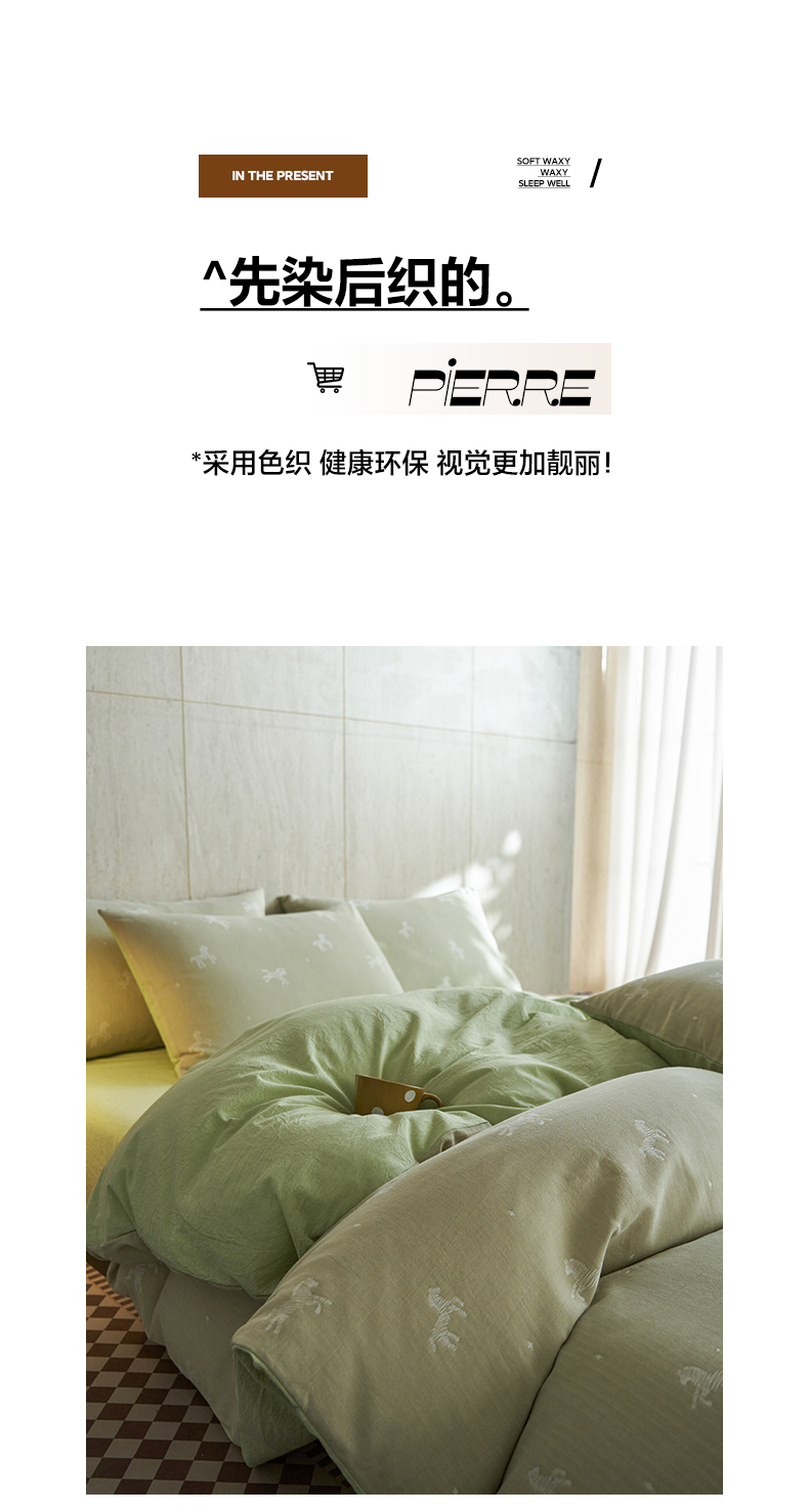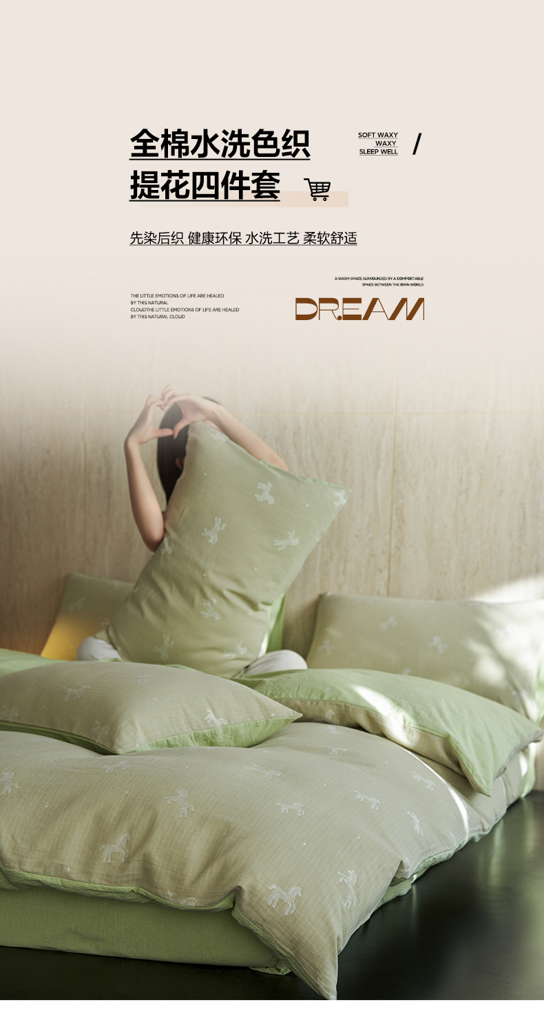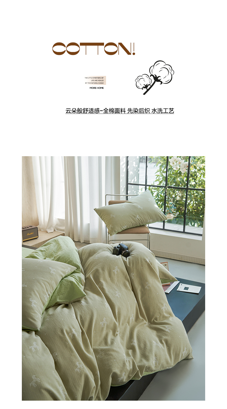 当前位置: 91家纺网 > 商品网购 > 床品套件 > 四件套 > 全棉普通四件套 > 如一 2026春夏新款色织提花全棉纯棉水洗棉四件套 骏影-绿