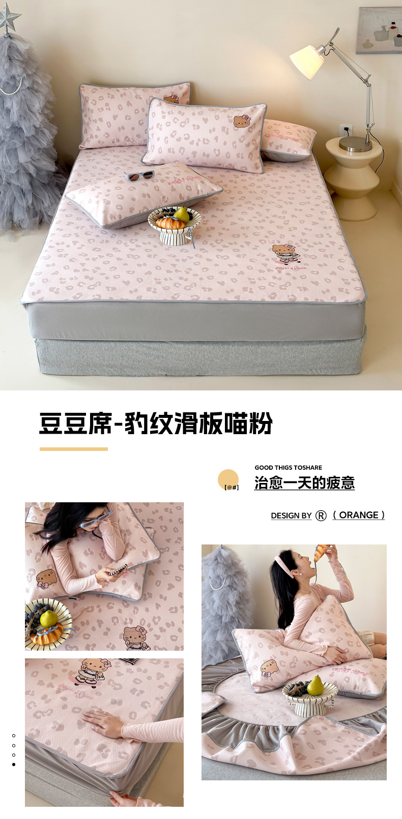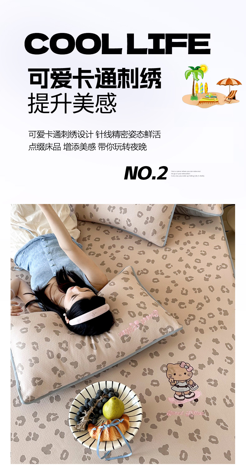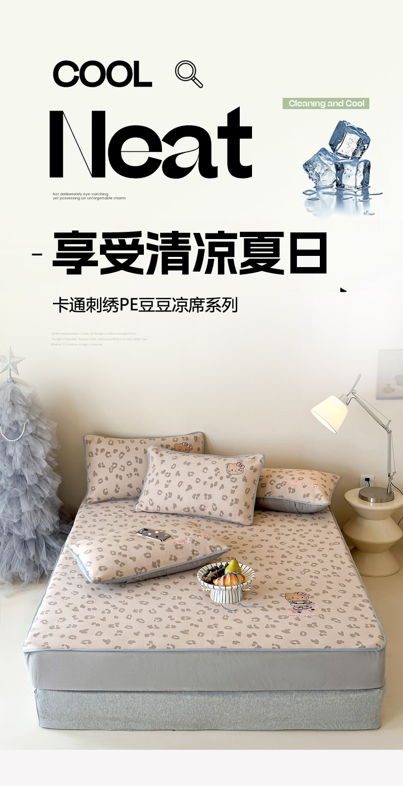 (总)沐慕 2026新款卡通绣花PE凉感豆豆床笠款凉席席子,组合图仅做展示不可下单,豆豆席-豹纹滑板喵粉,豆豆席-豹纹滑板喵咖,豆豆席-豹纹滑板喵蓝