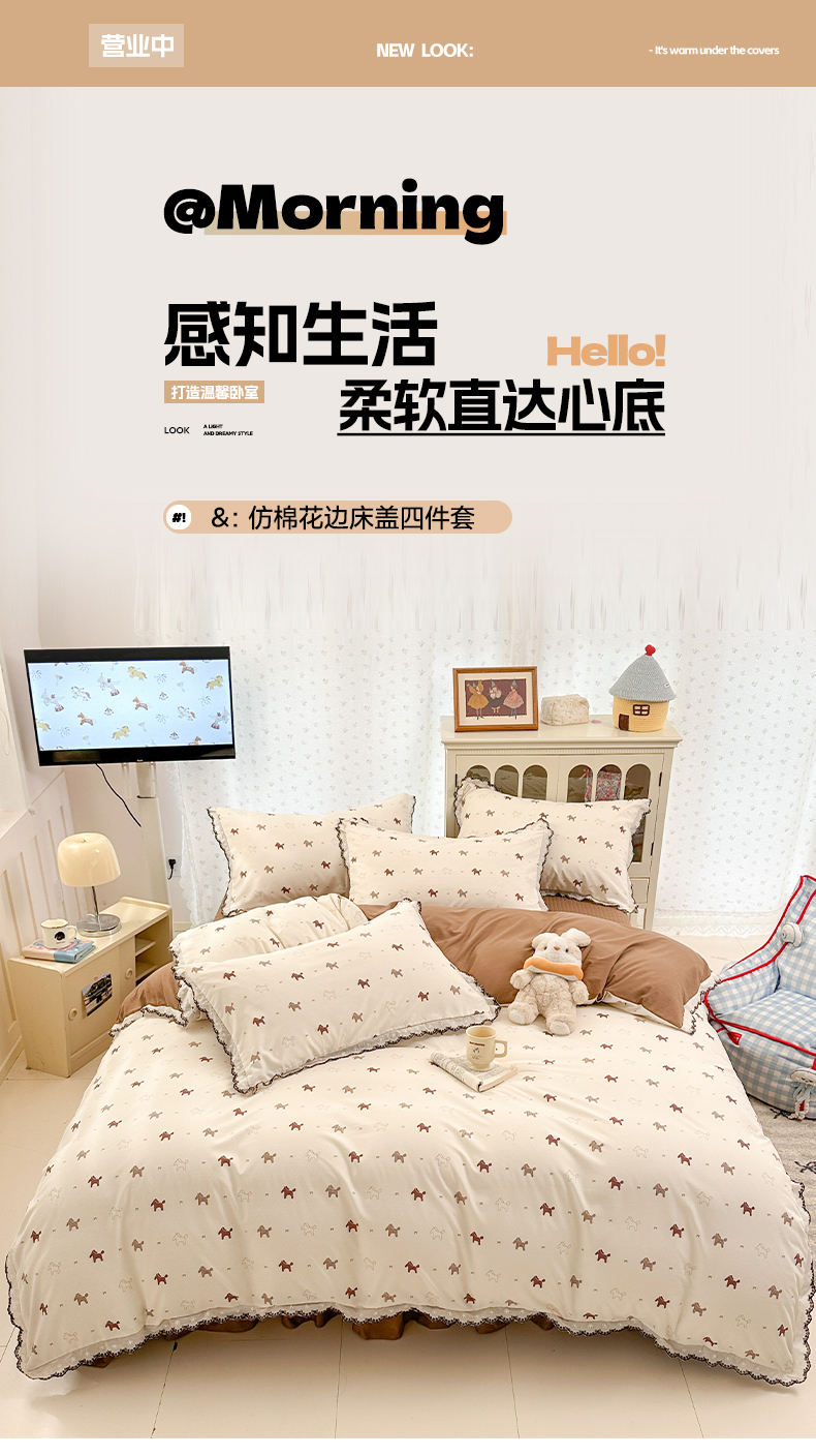 (总)莱米家纺 2023新款全棉印花四件套,元气女孩
