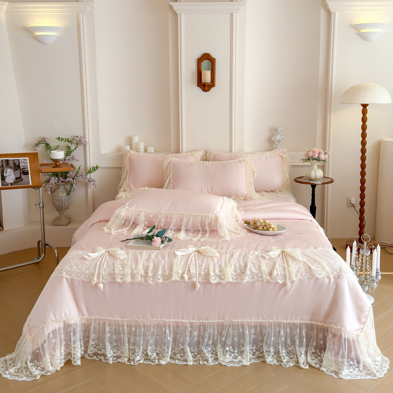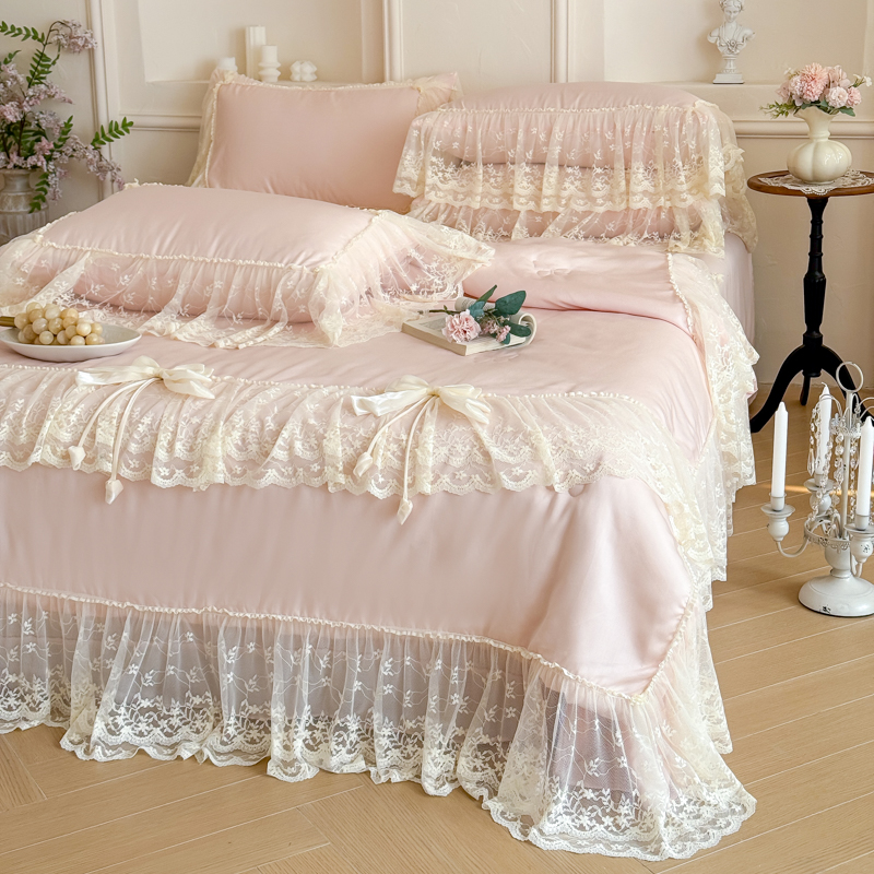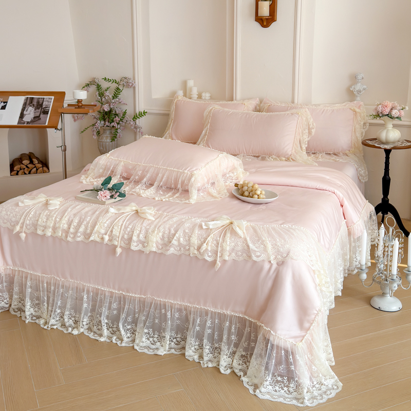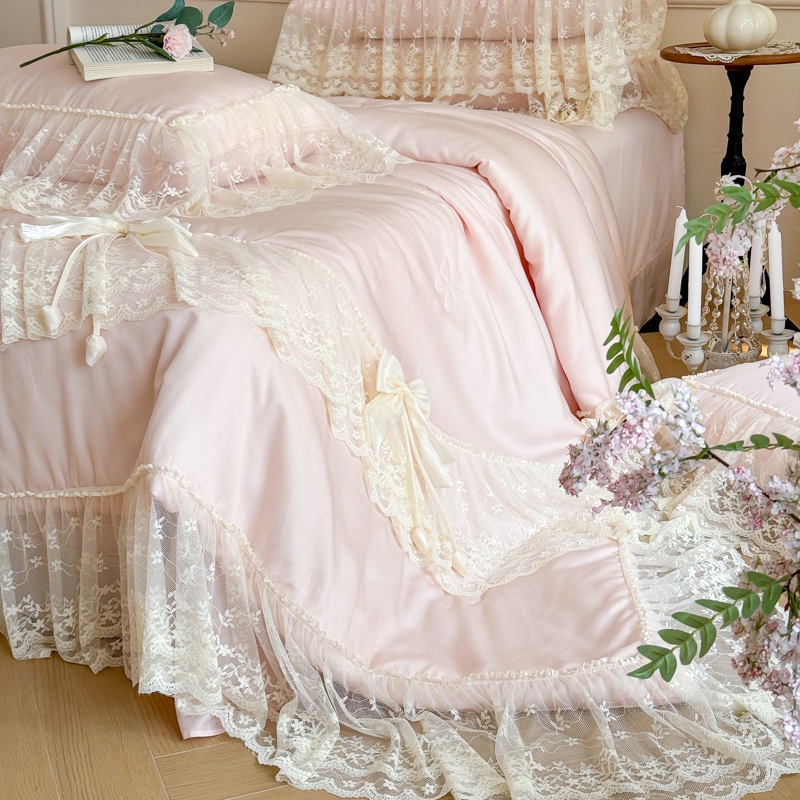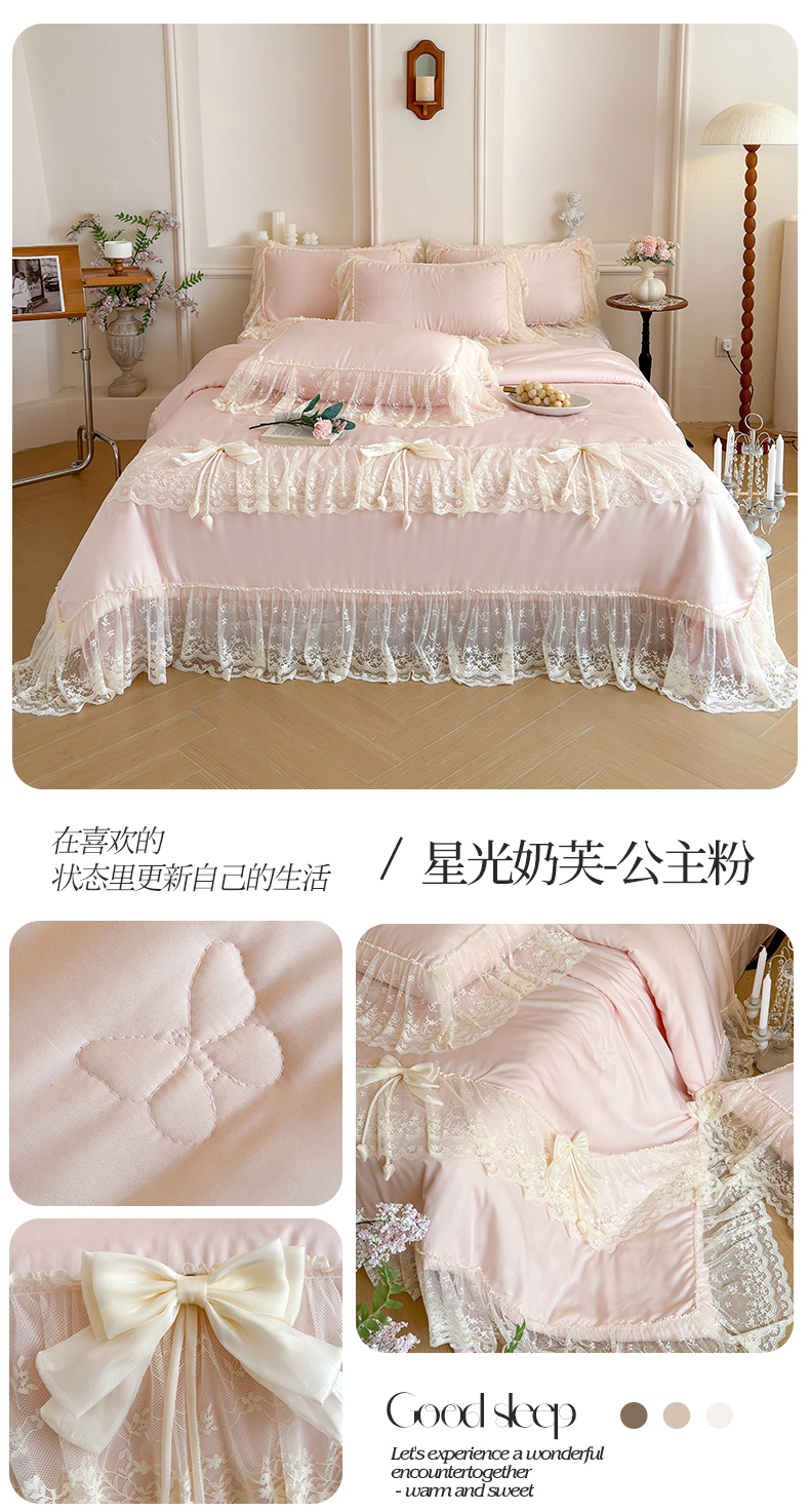 商品名称:爱家(原缔乐家纺) 2026新款轻奢法式天丝夏被四件套 星光奶芙-公主粉