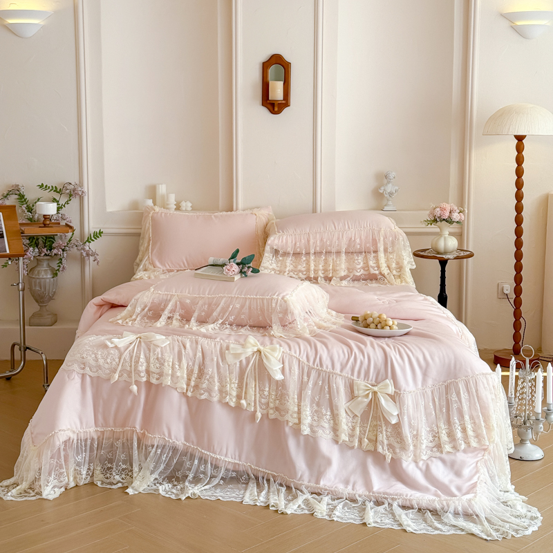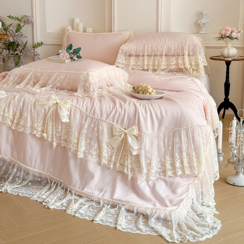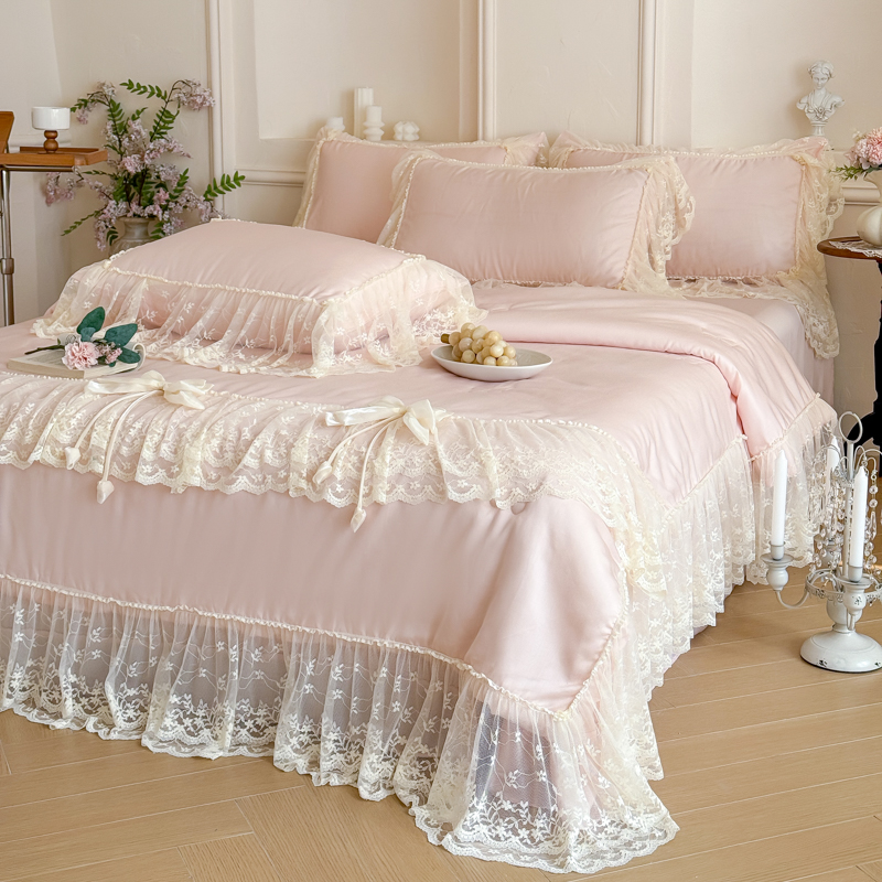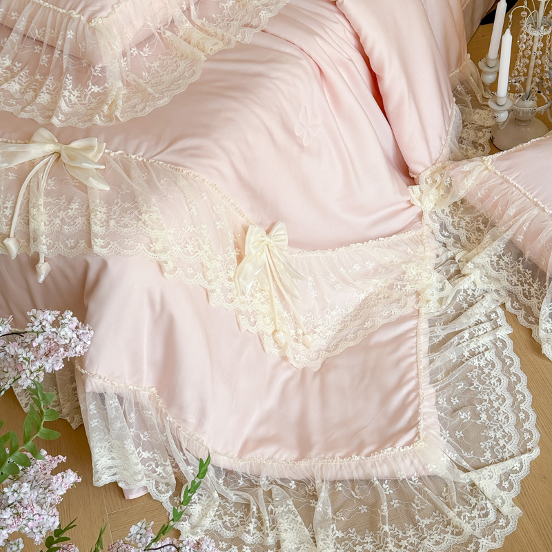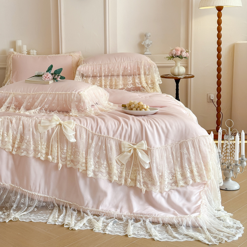 商品名称:爱家(原缔乐家纺) 2026新款轻奢法式天丝夏被四件套 星光奶芙-公主粉