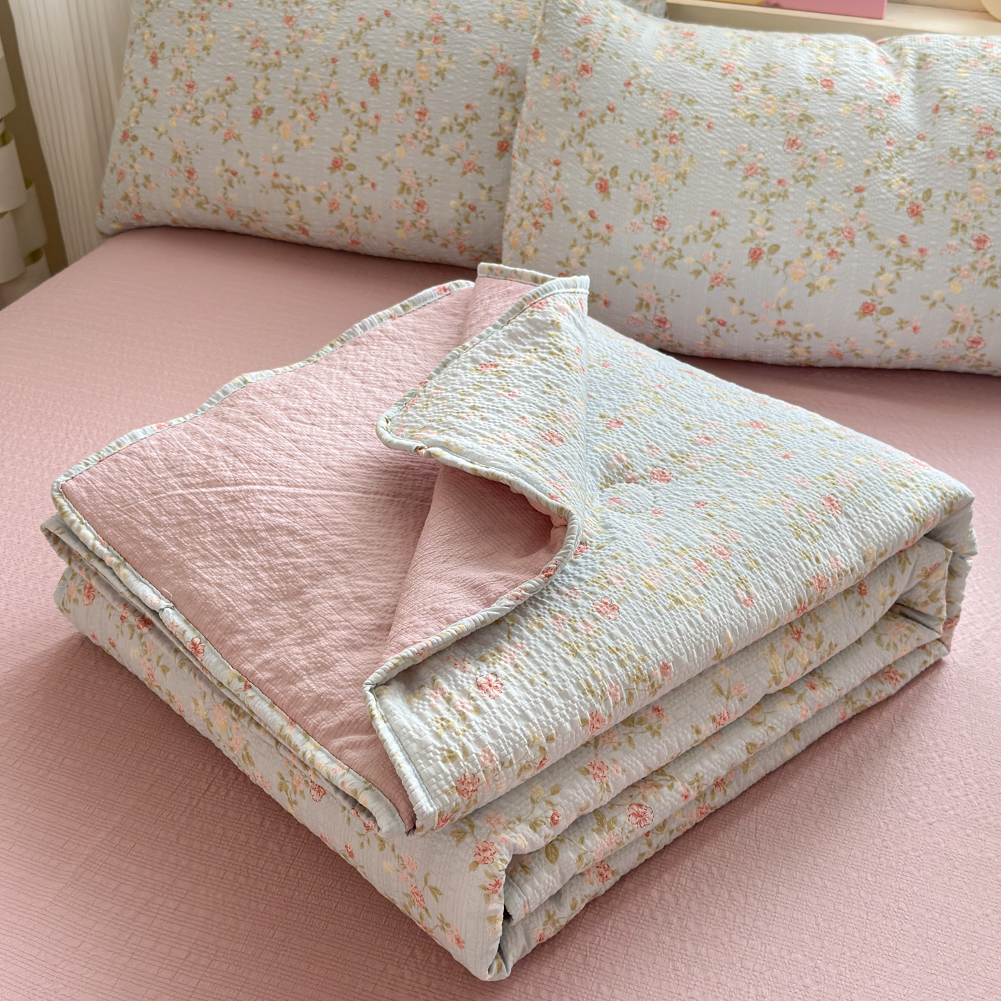 (总)德比尔斯 2026新款针织双层纱单夏被夏被四件套,春意,花季绿,花沐,咖茵,恐龙,蓝茵,奶油啵啵,素雅,心沫灰,樱桃咖,丁香紫