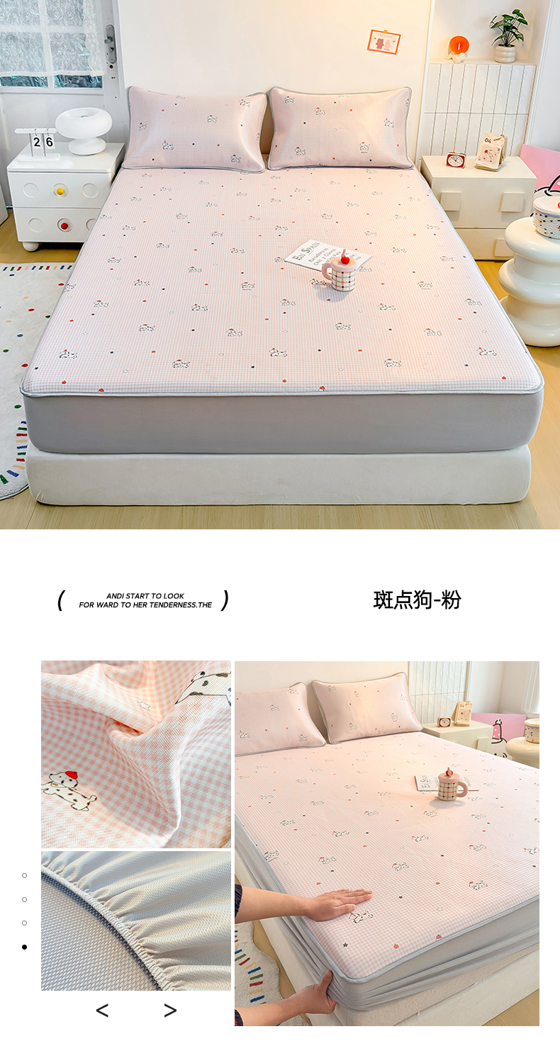 (总)小萌虎 2025新款冰豆豆凉席 床笠款,粉玉,果绿,灰色,咖色,浅蓝,深蓝