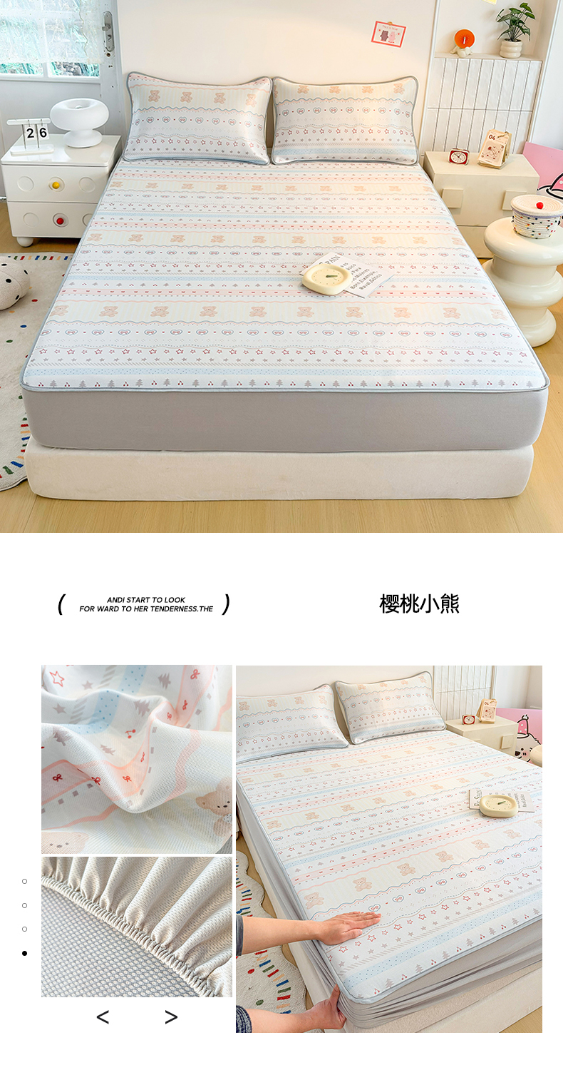(总)小萌虎 2026新款碳光冰丝凉席床笠款拍法二,爱心熊,斑点狗-粉,斑点狗-灰,大熊猫,蝴蝶结小熊,花田,机器城堡,蓝格小熊,密语,莫奈,七彩蝴蝶,四叶草,小恐龙,小熊猫,星空,一马当先,银杏叶,樱桃小熊