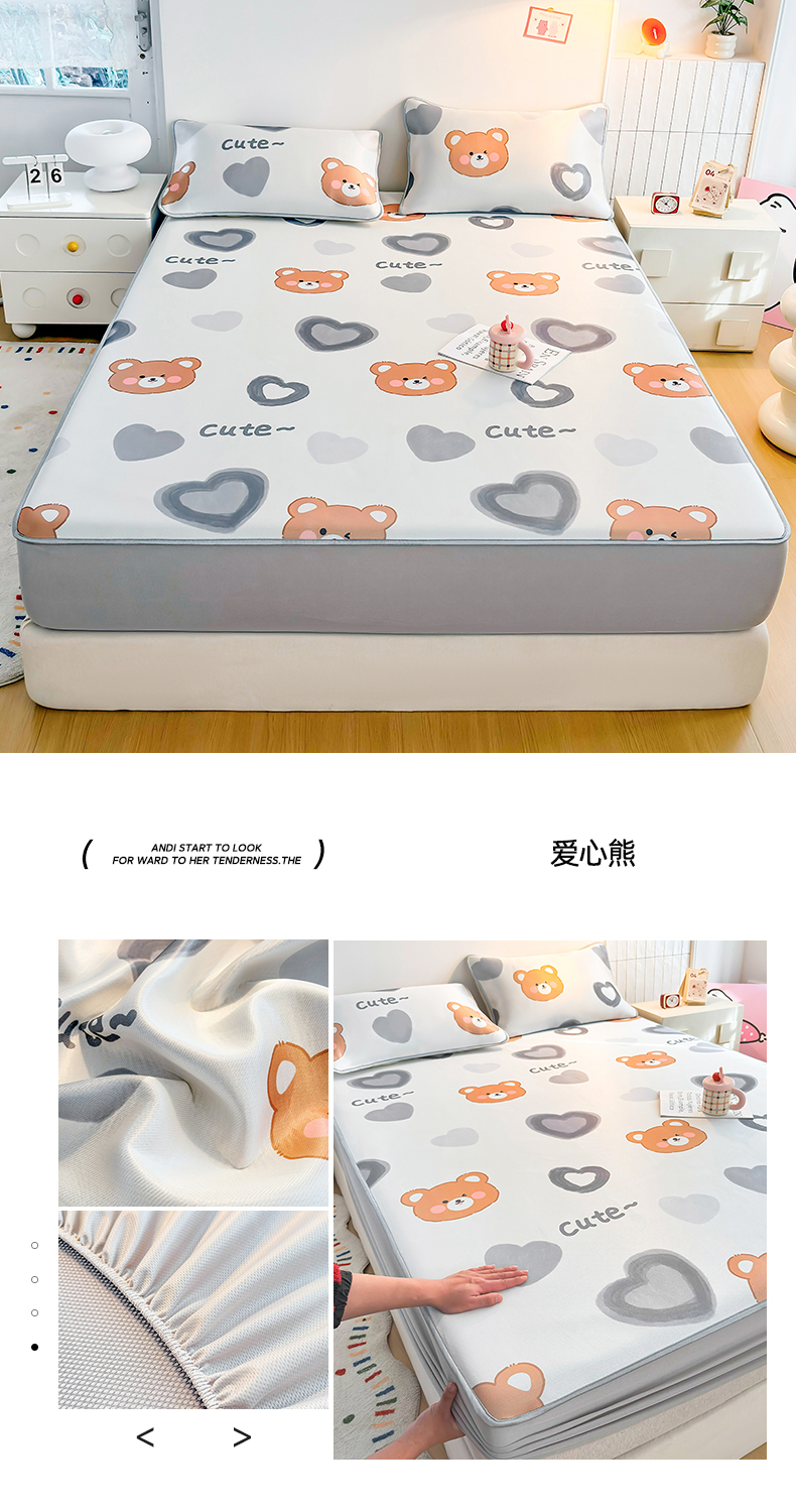 (总)小萌虎 2025新款凉感丝胶质凉席床笠款,爱心,遨游太空,波浪字母,大欧,方格熊咖,方格熊蓝,粉玉,富贵象,高级灰,格调,花草,花海,可爱鸭,恐龙,墨绿,轻奢,水绿,水蜜桃,水墨,水纹,小欧,小兔,小熊,杏韵,幸运条纹
