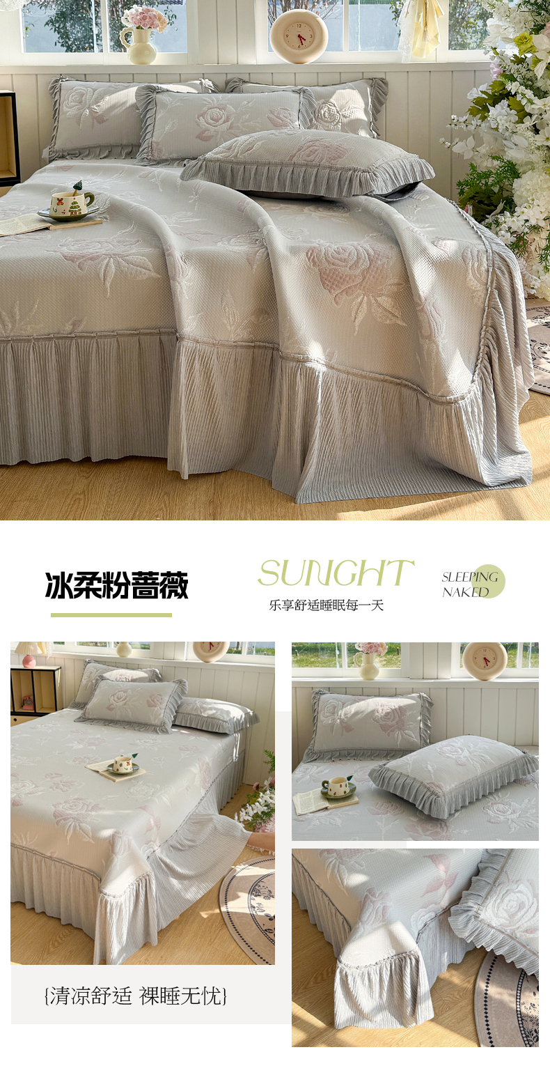 (总)恋佳居 2026新款A类PE中分子凉感丝床笠凉席,冰柔粉蔷薇,冰柔蓝蔷薇,冰沙银丝蓝格,冰纱银丝灰格,冰纱银丝绿格,冰柔灰蔷薇