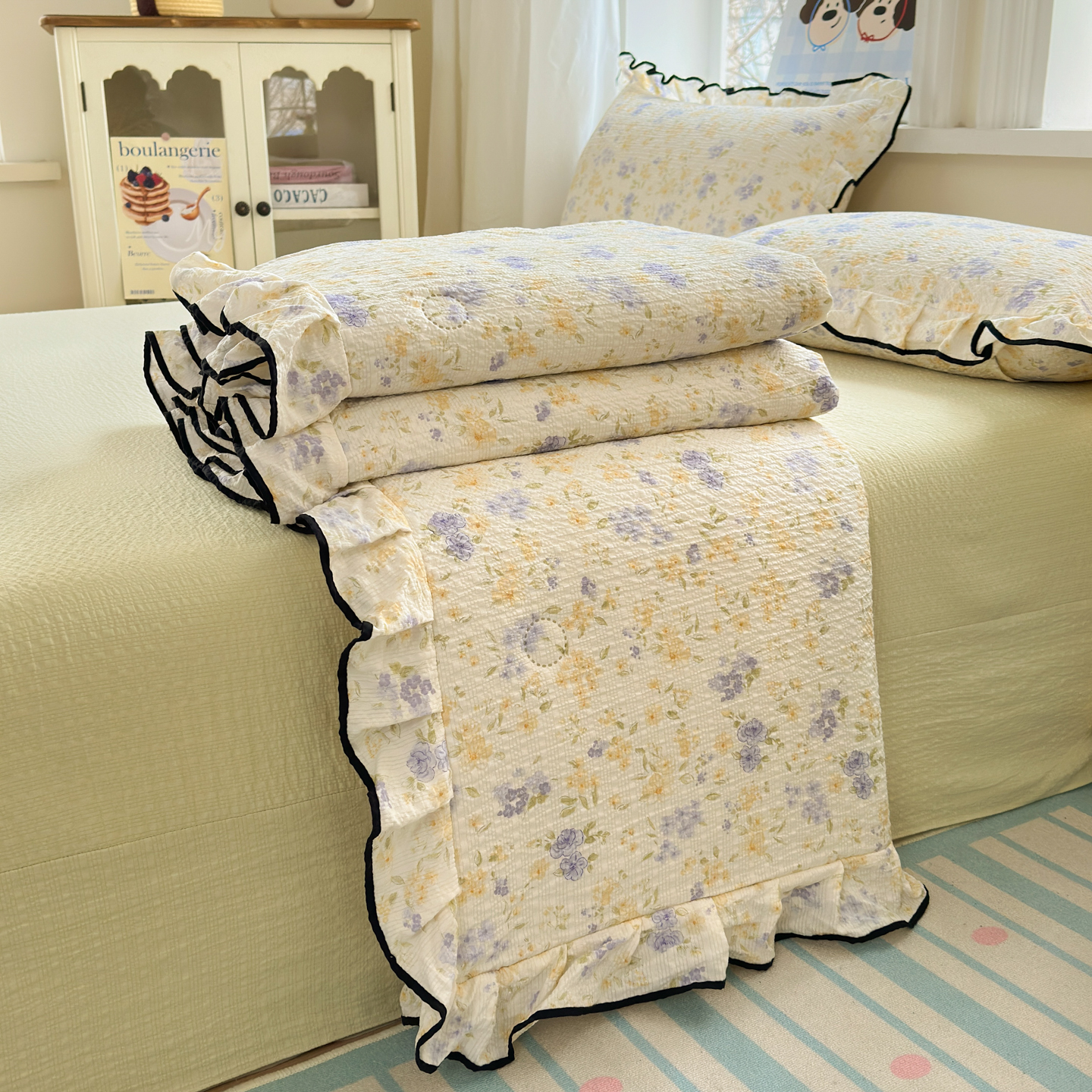 (总)德比尔斯 2026新款7D豆豆韩版泡泡纱单夏被夏被四件套,芥末绿,亮丽黄,蜜桃粉,水蓝,星辰紫