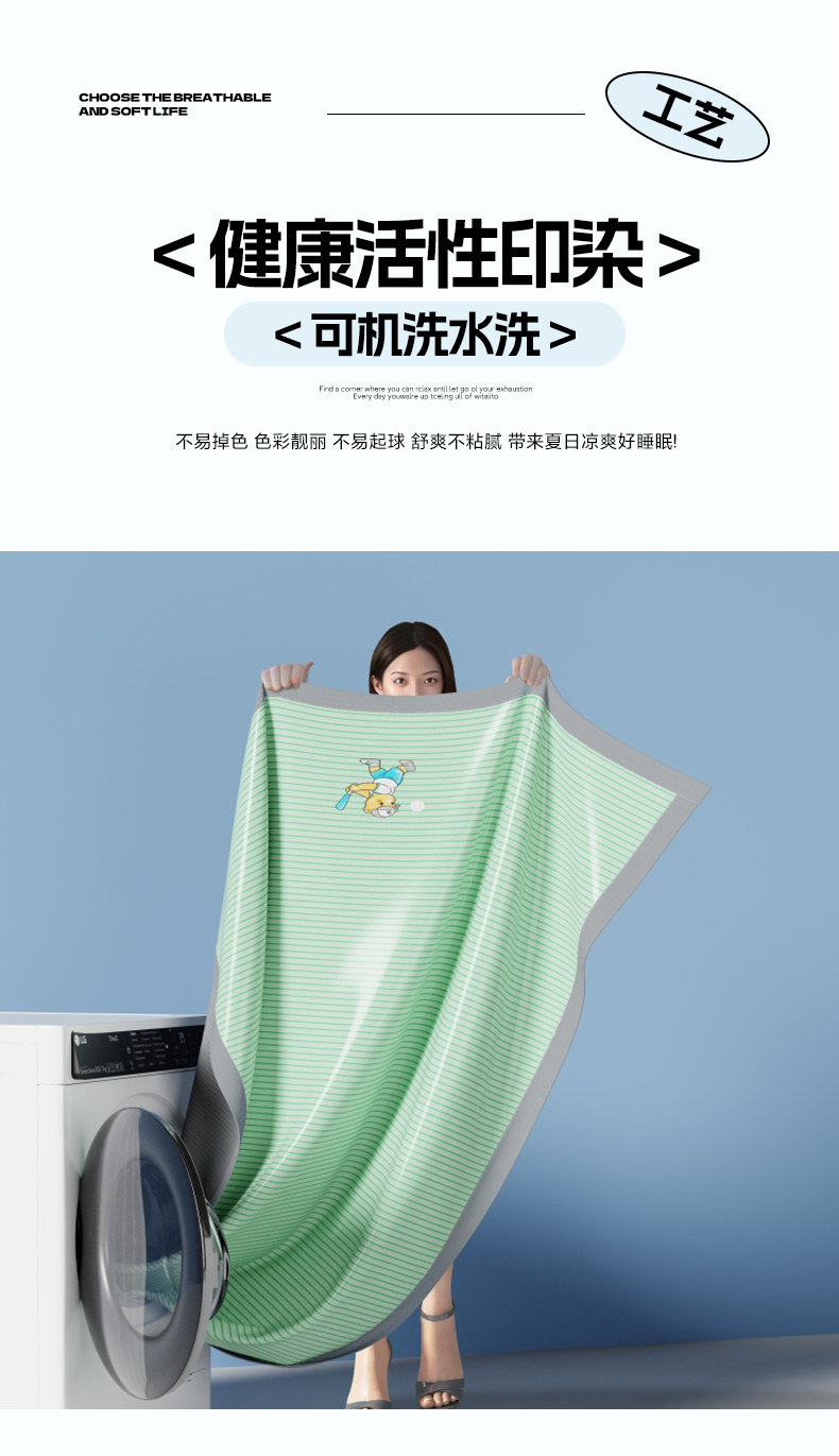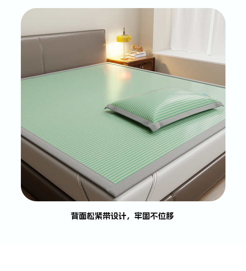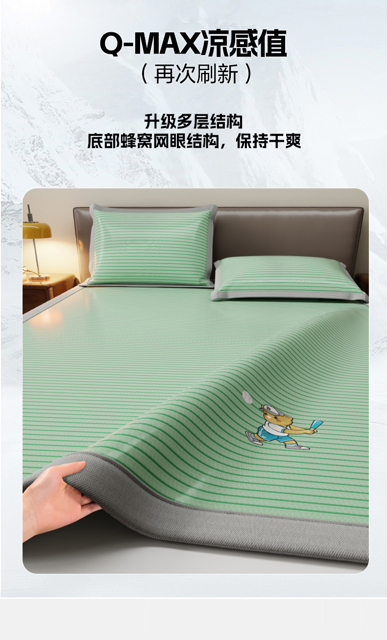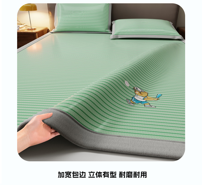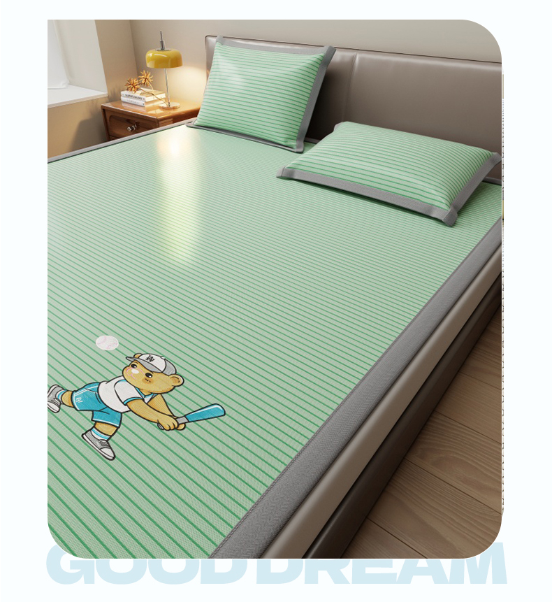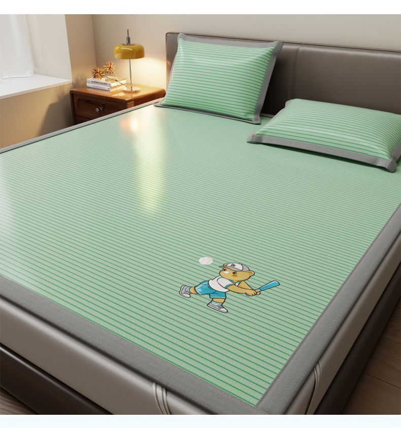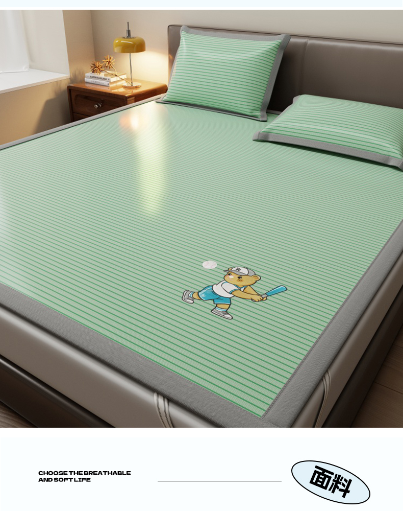 商品名称:人人爱家纺 2026新款提花冰丝凉席-棒球熊 棒球熊抹茶绿条纹