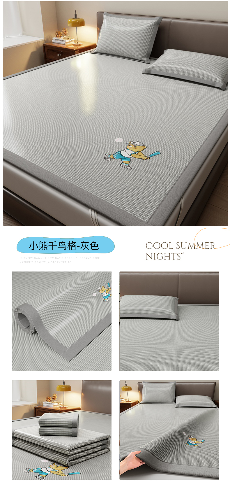 (总)人人爱家纺 2026新款提花冰丝凉席-棒球熊,棒球熊千鸟格蓝色,棒球熊粉色条纹,棒球熊灰色条纹,棒球熊蓝色条纹,棒球熊立体格灰色,棒球熊立体格蓝色,棒球熊抹茶绿条纹,棒球熊千鸟格灰色