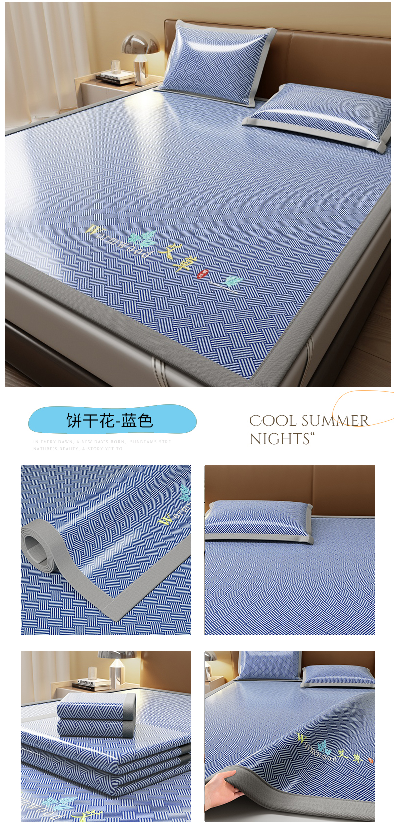 当前位置: 91家纺网 > 商品网购 > 床上用品 > 凉席 > 冰丝席 > 人人爱家纺 2026新款A类双面冰丝凉席 饼干花-蓝