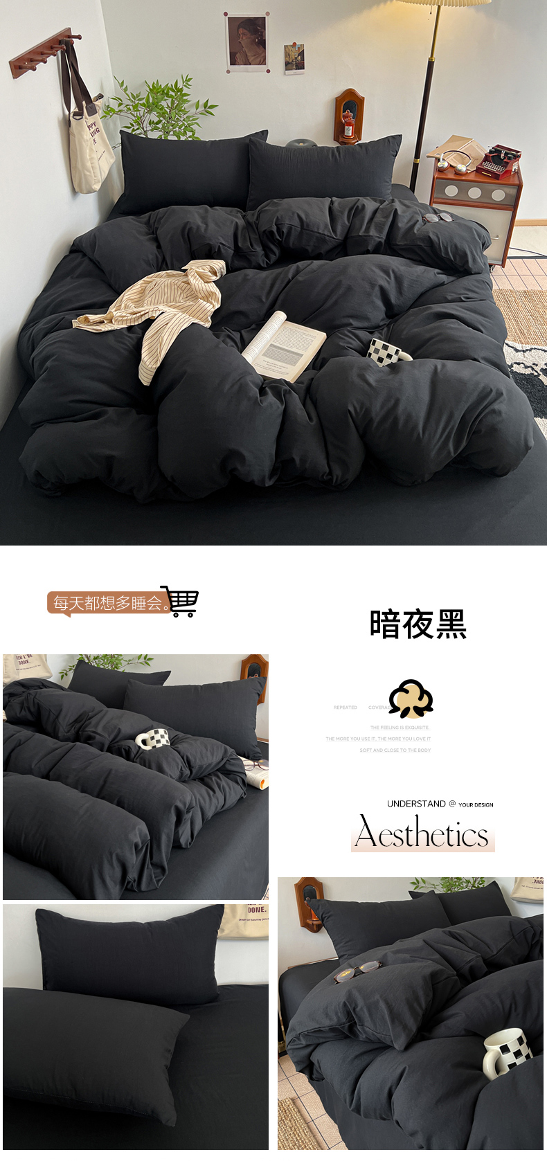 当前位置: 91家纺网 > 商品网购 > 床品套件 > 四件套 > 化纤普通四件套 > 梦嘉居 2026新款亲肤纯色AB版水洗皱皱棉四件套学生宿舍床单床笠三件套 暗夜黑