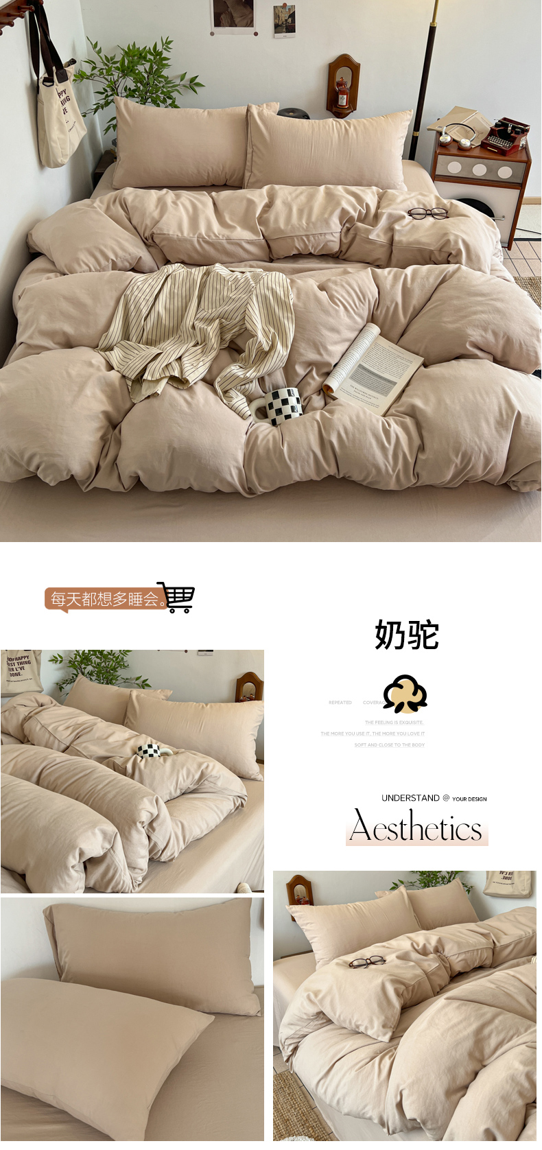 当前位置: 91家纺网 > 商品网购 > 床品套件 > 四件套 > 化纤普通四件套 > 梦嘉居 2026新款亲肤纯色AB版水洗皱皱棉四件套学生宿舍床单床笠三件套 奶驼