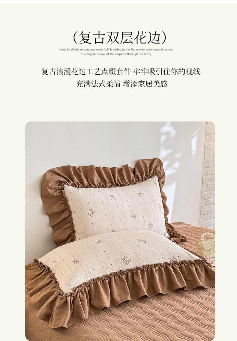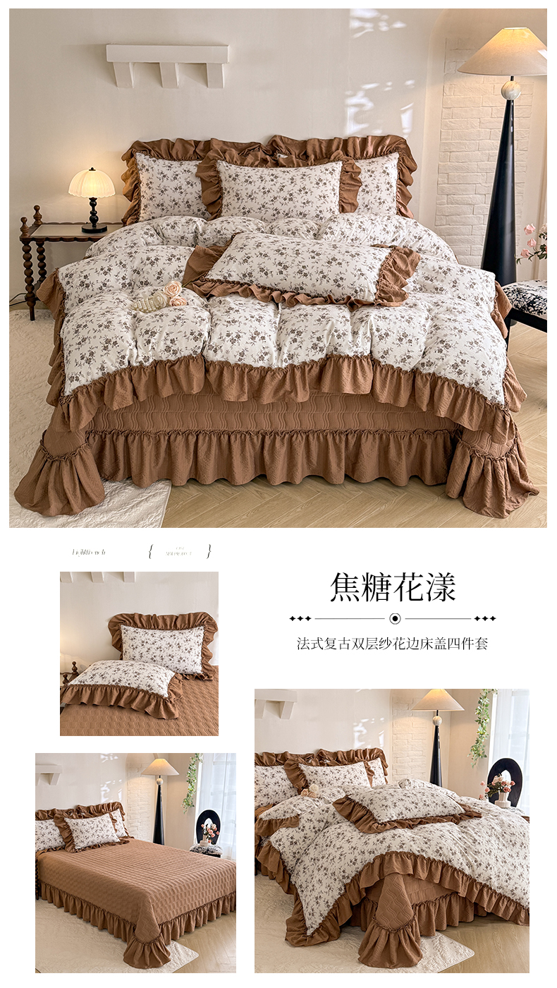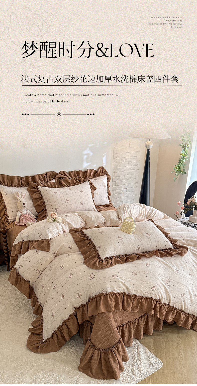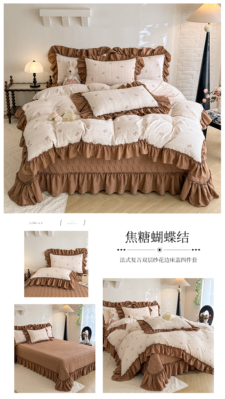商品名称:(总)金盛皇朝家纺 2026新款(焦糖系列)双层纱水洗棉 法式复古花边床盖单件三件四件套