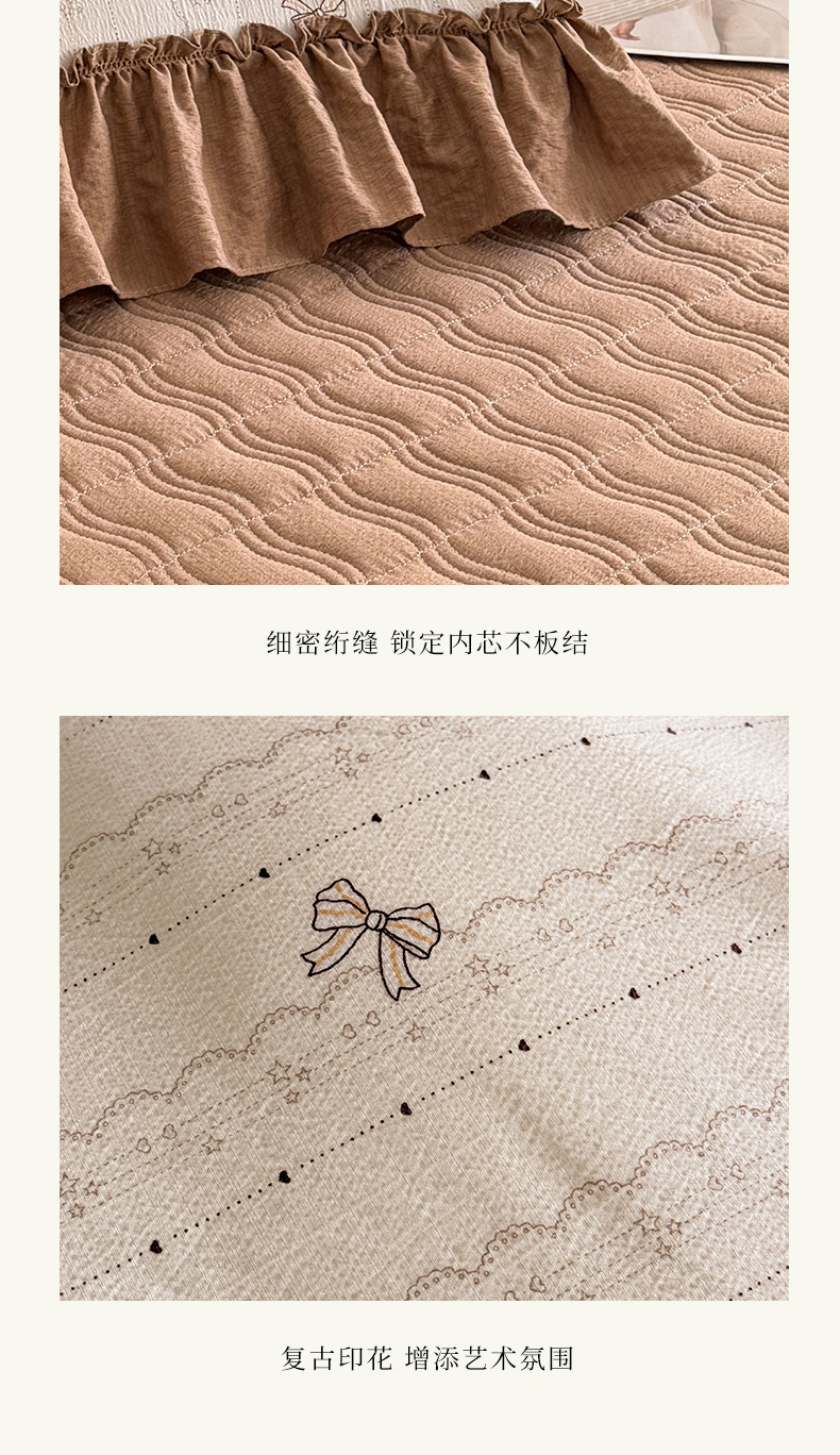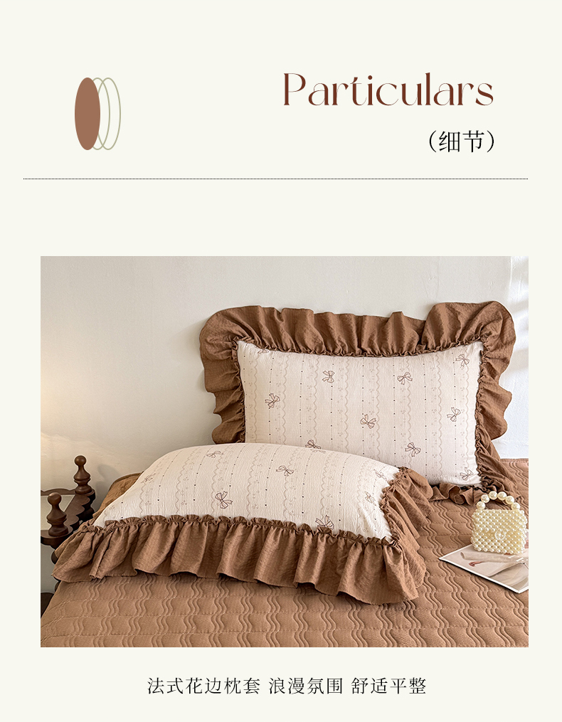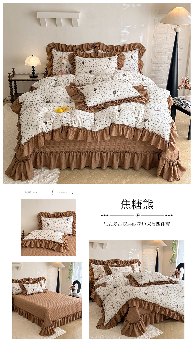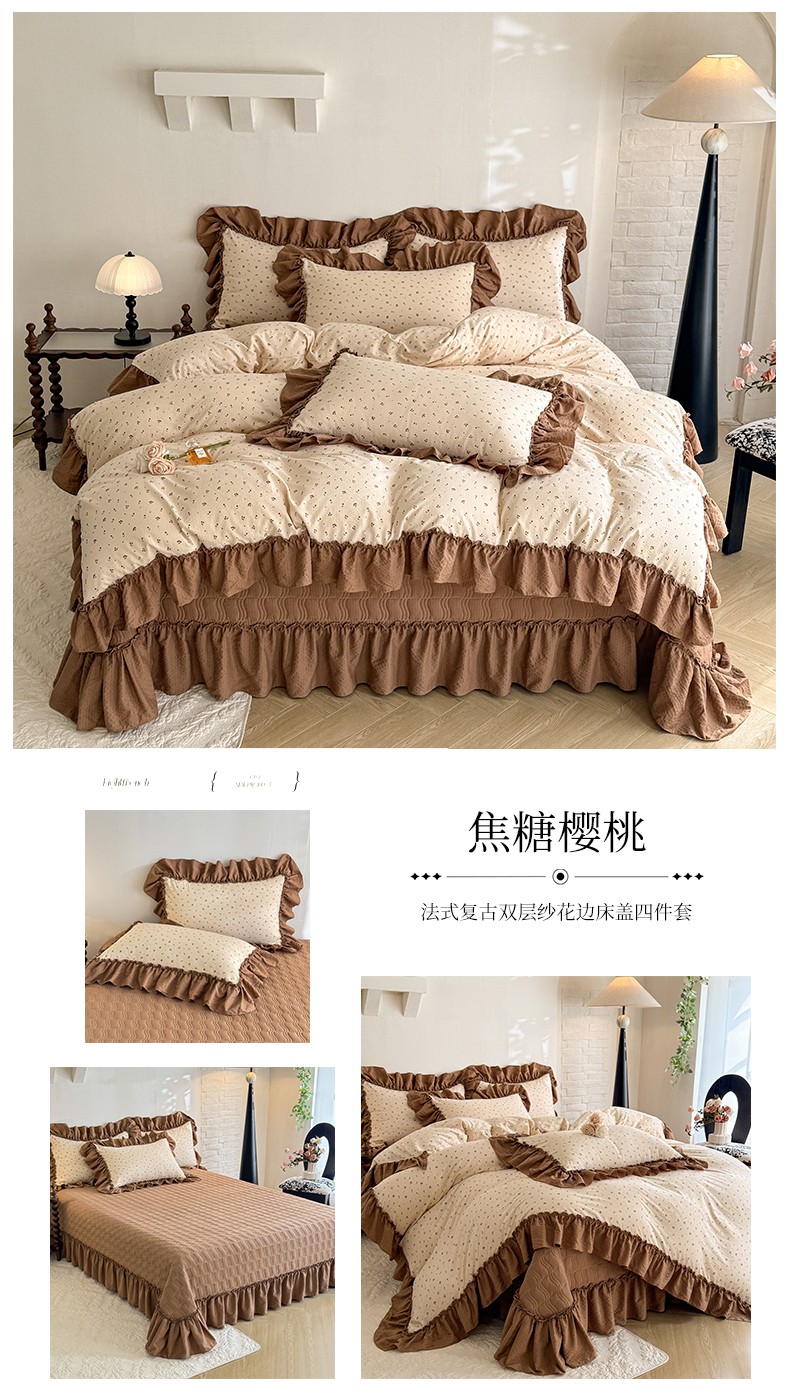 商品名称:(总)金盛皇朝家纺 2026新款(焦糖系列)双层纱水洗棉 法式复古花边床盖单件三件四件套