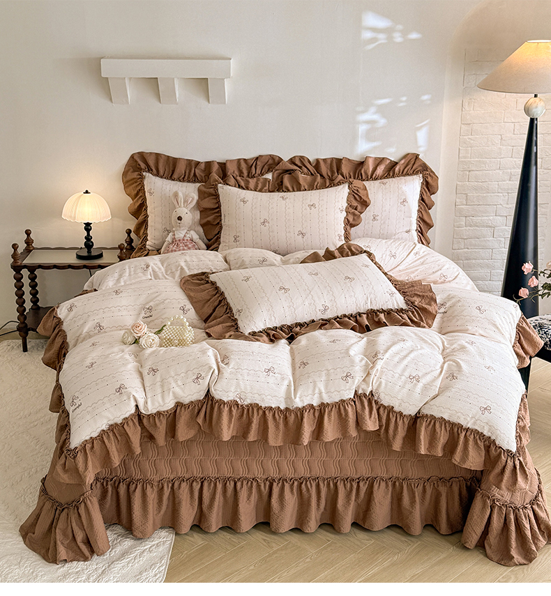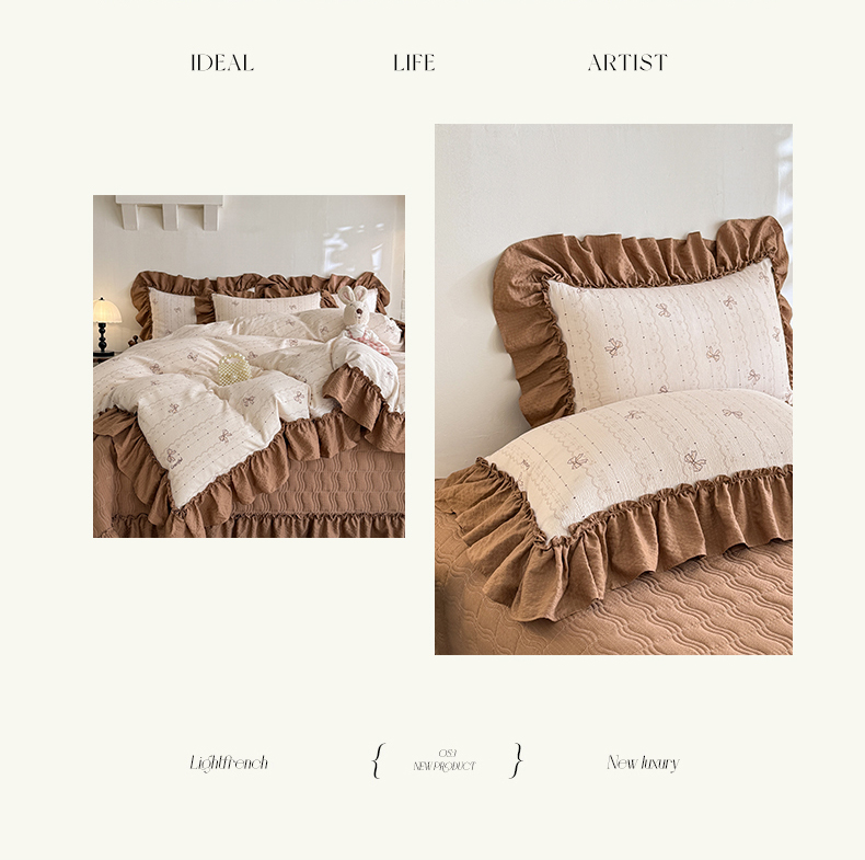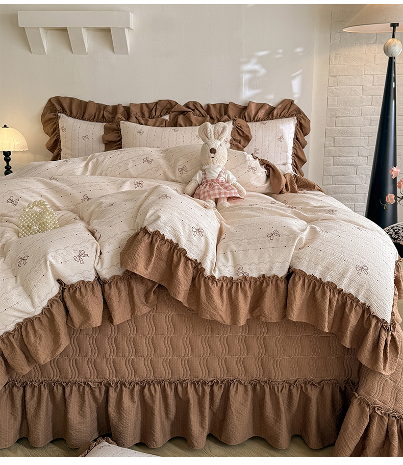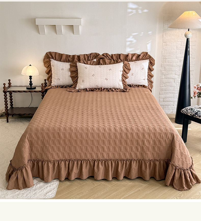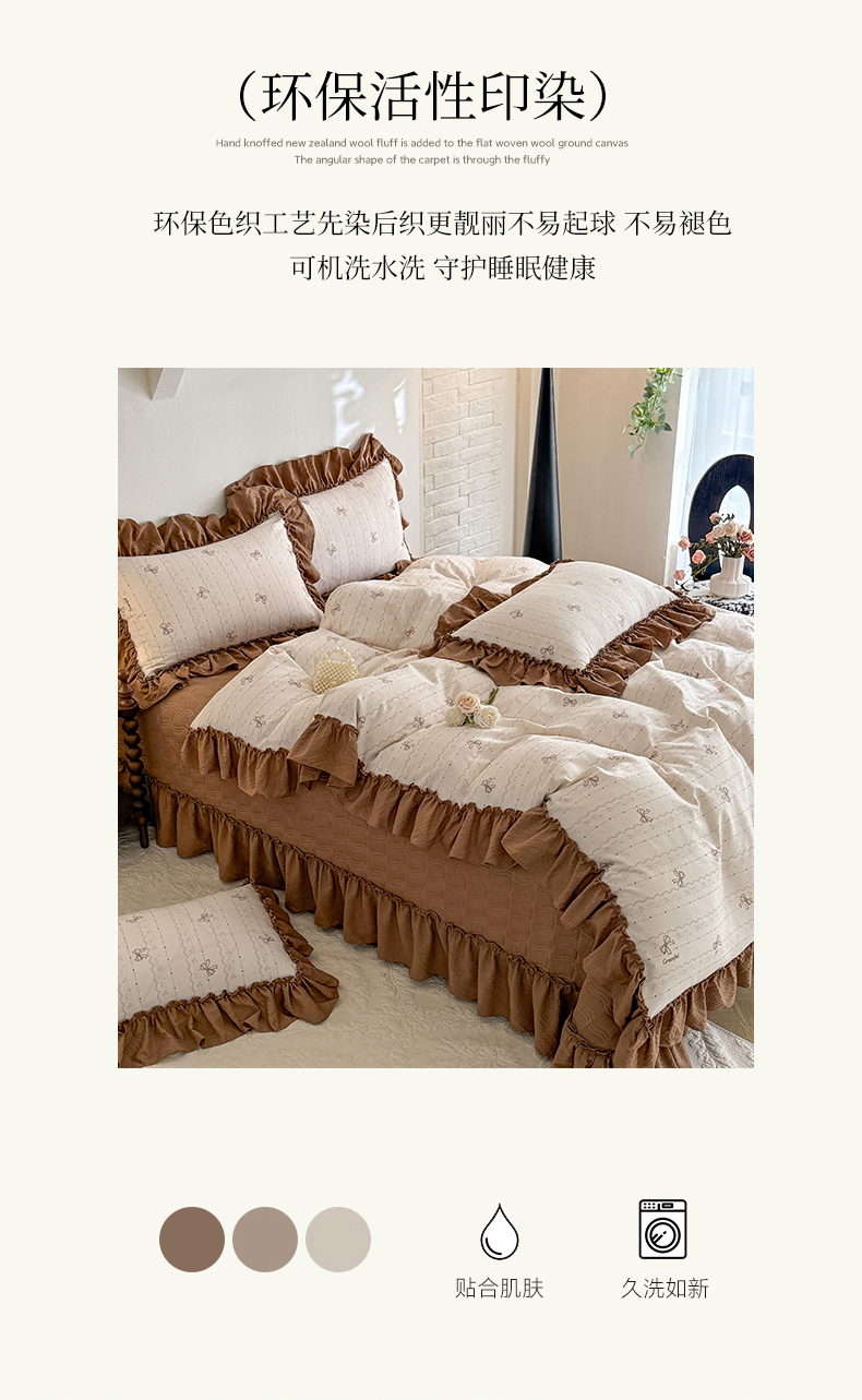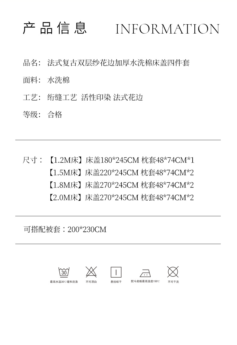 商品名称:(总)金盛皇朝家纺 2026新款(焦糖系列)双层纱水洗棉 法式复古花边床盖单件三件四件套