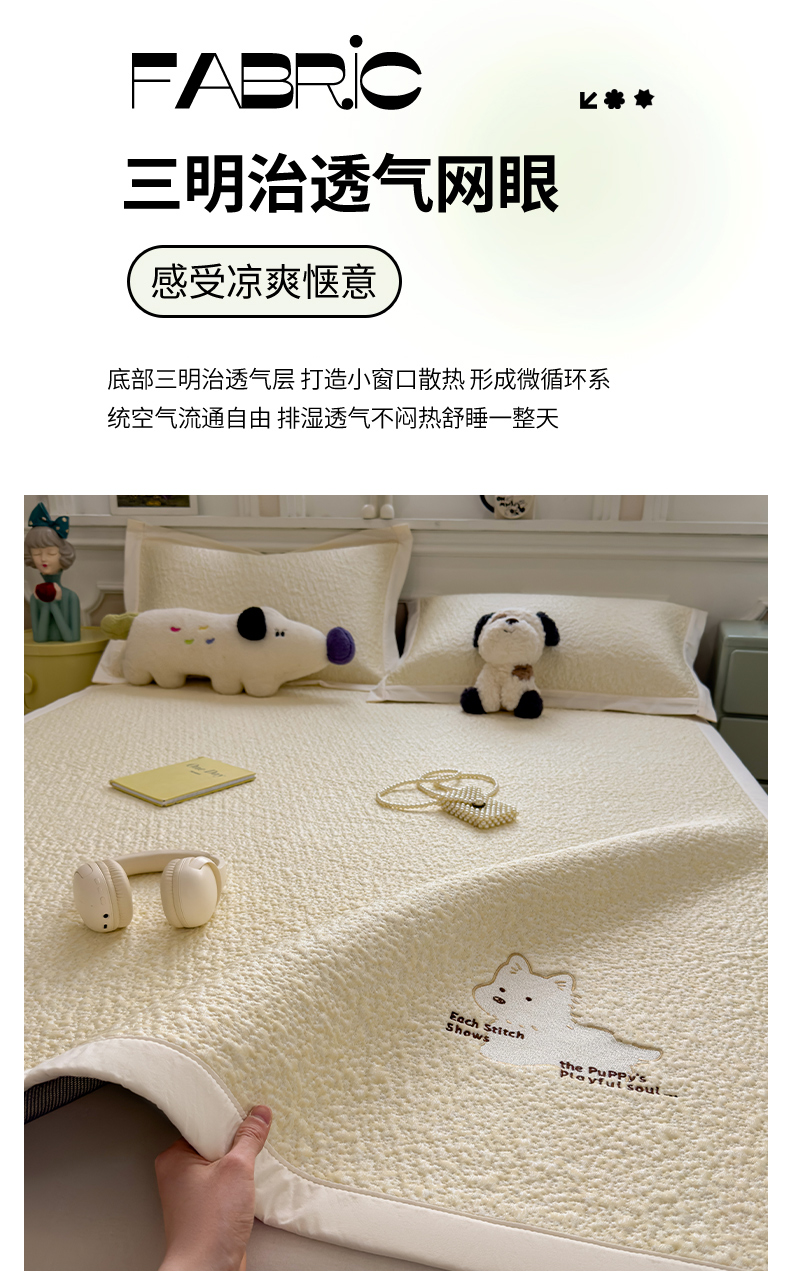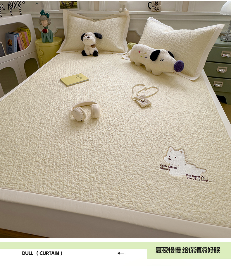当前位置: 91家纺网 > 商品网购 > 床上用品 > 凉席 > 其他凉席 > 几禾 2026春夏新款双泡刺绣款凉席席子空调软席 围巾小狗 床席款