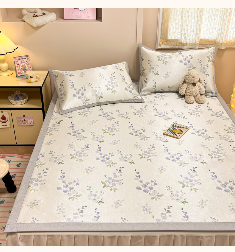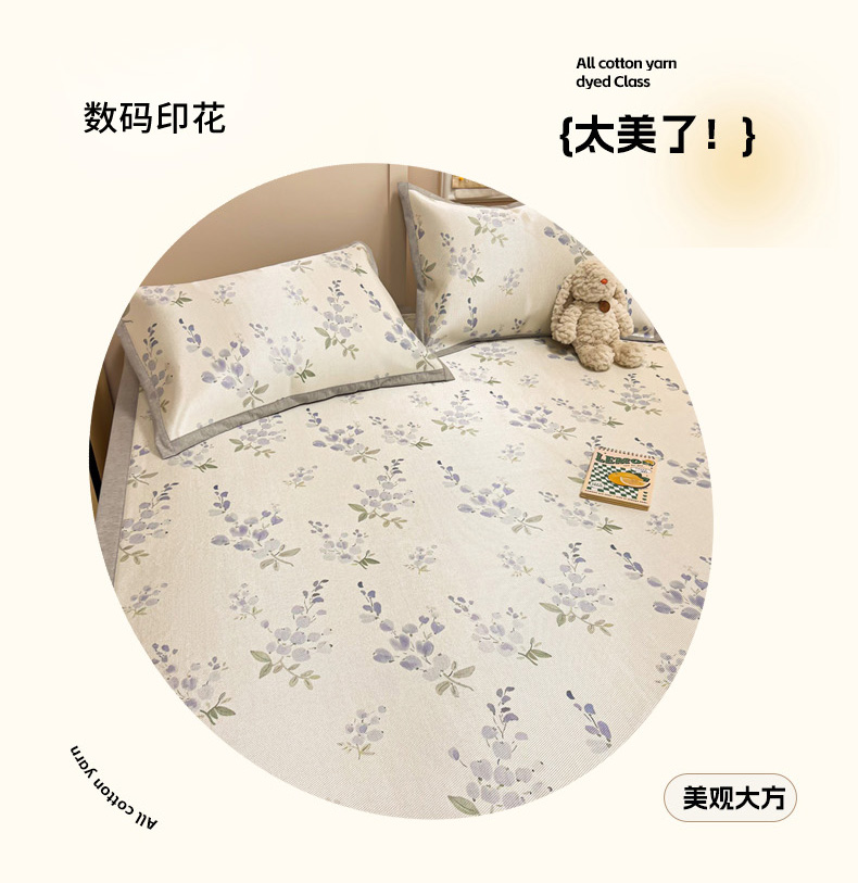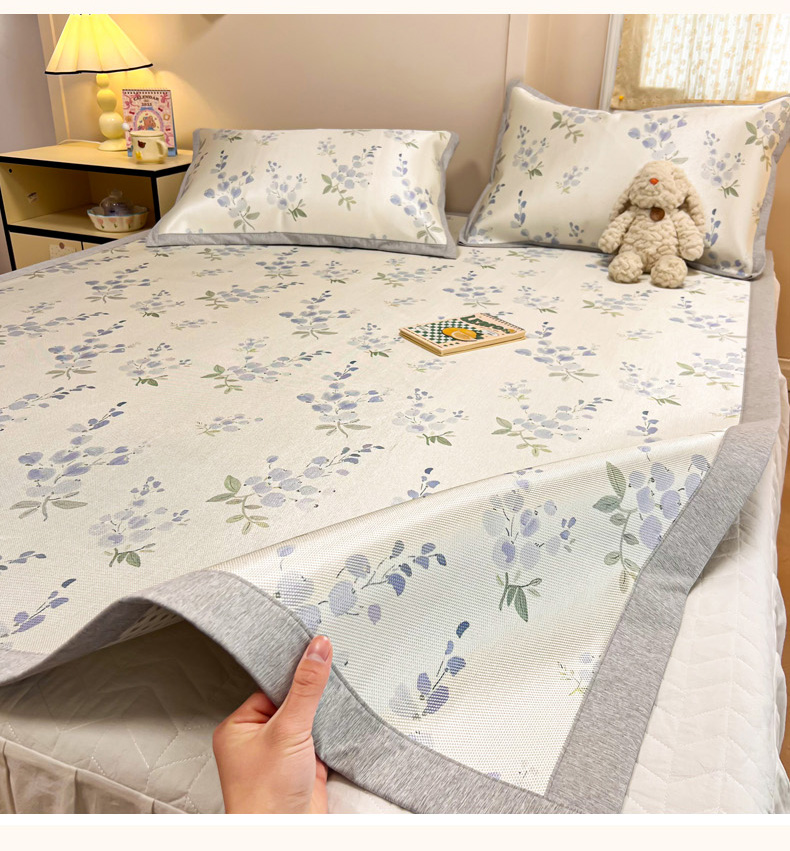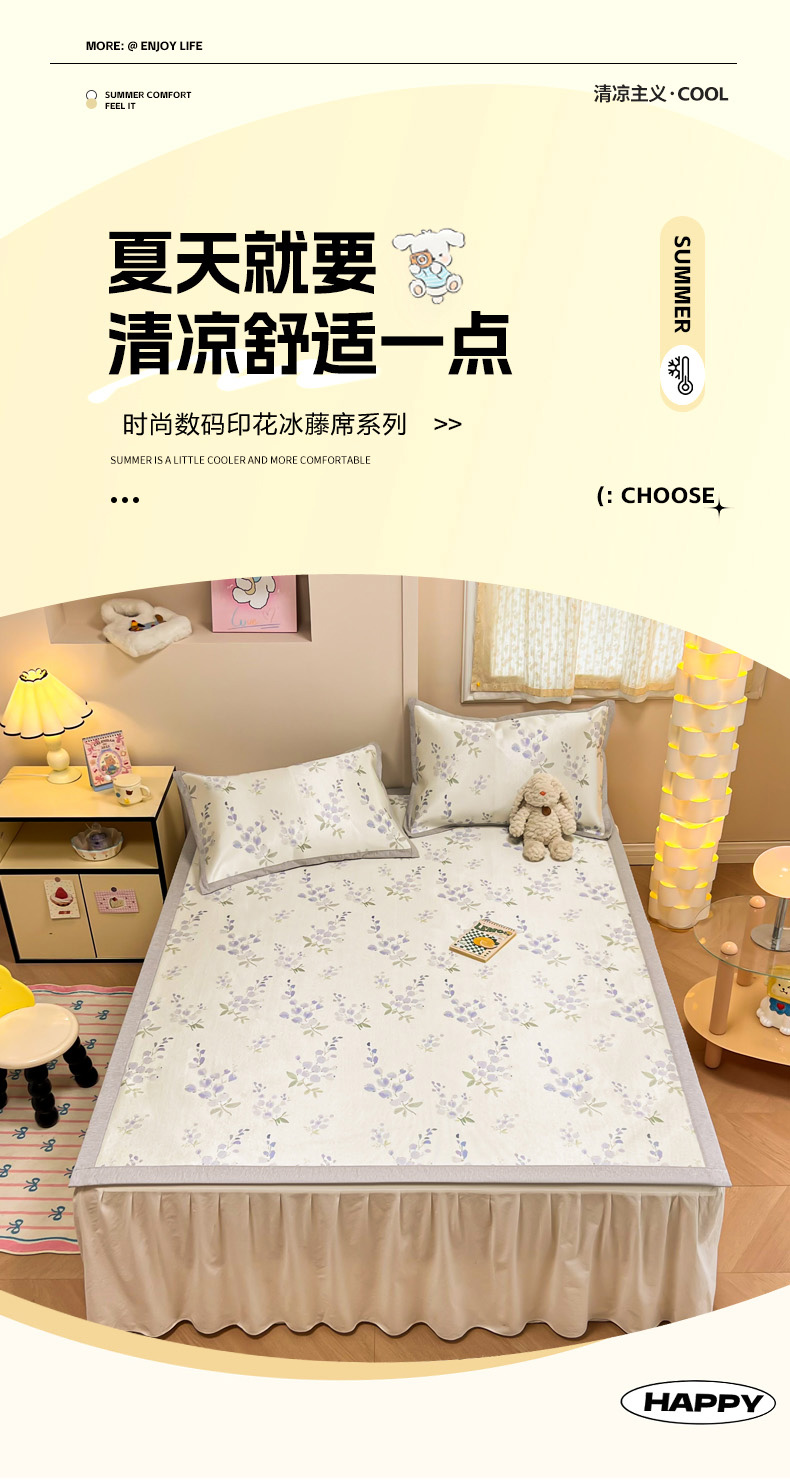 沐慕 2026新款高克重600D冰丝印花冰藤席 冰藤-薰衣草