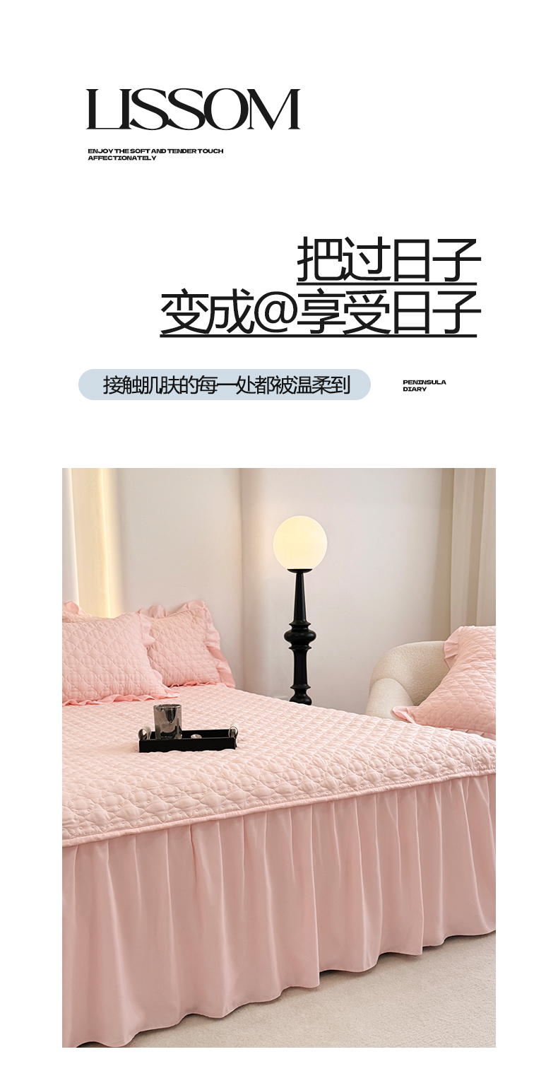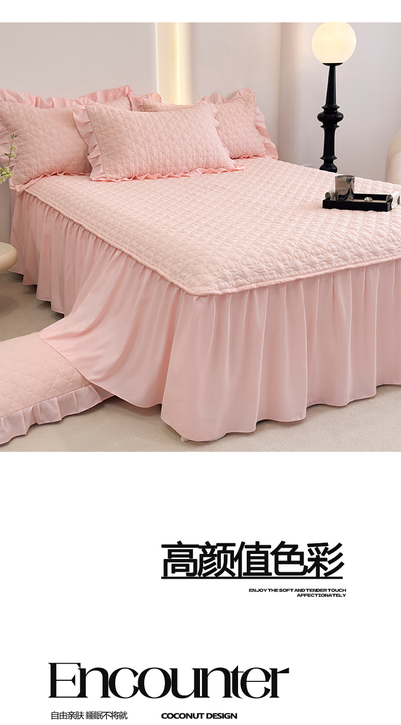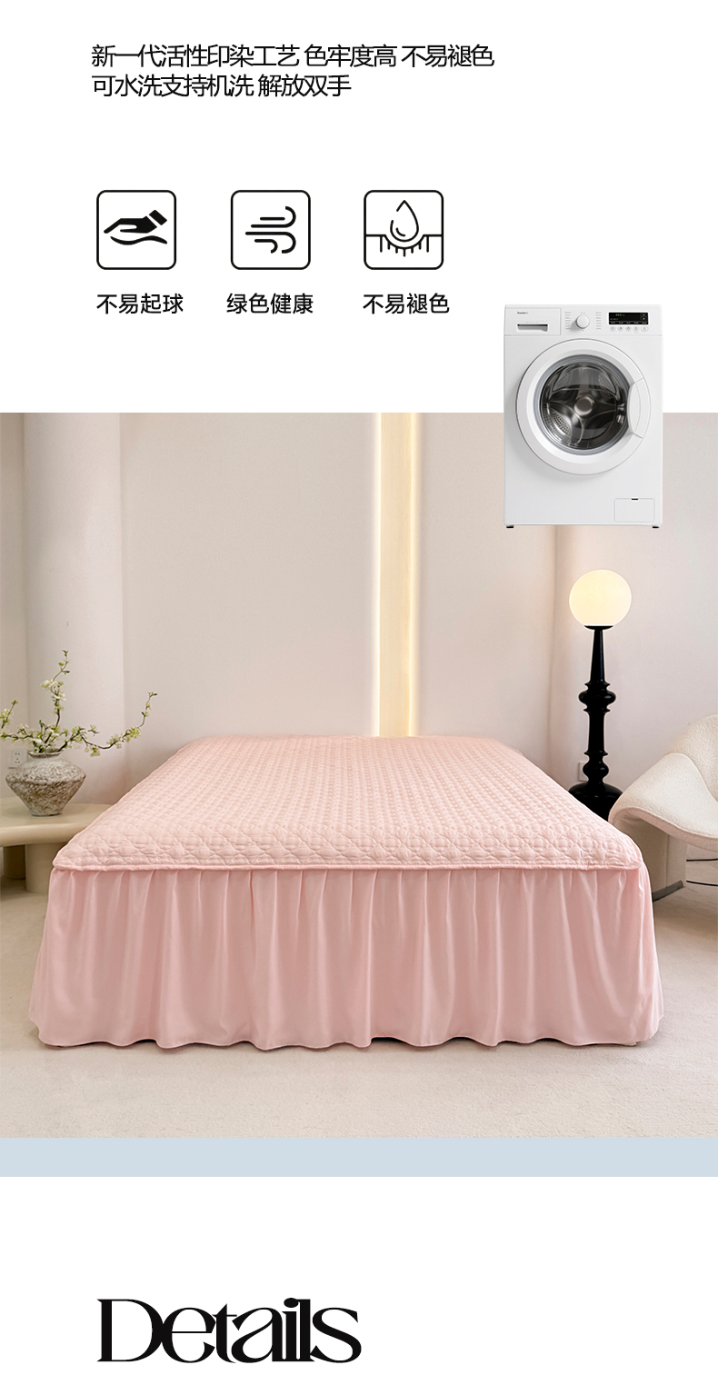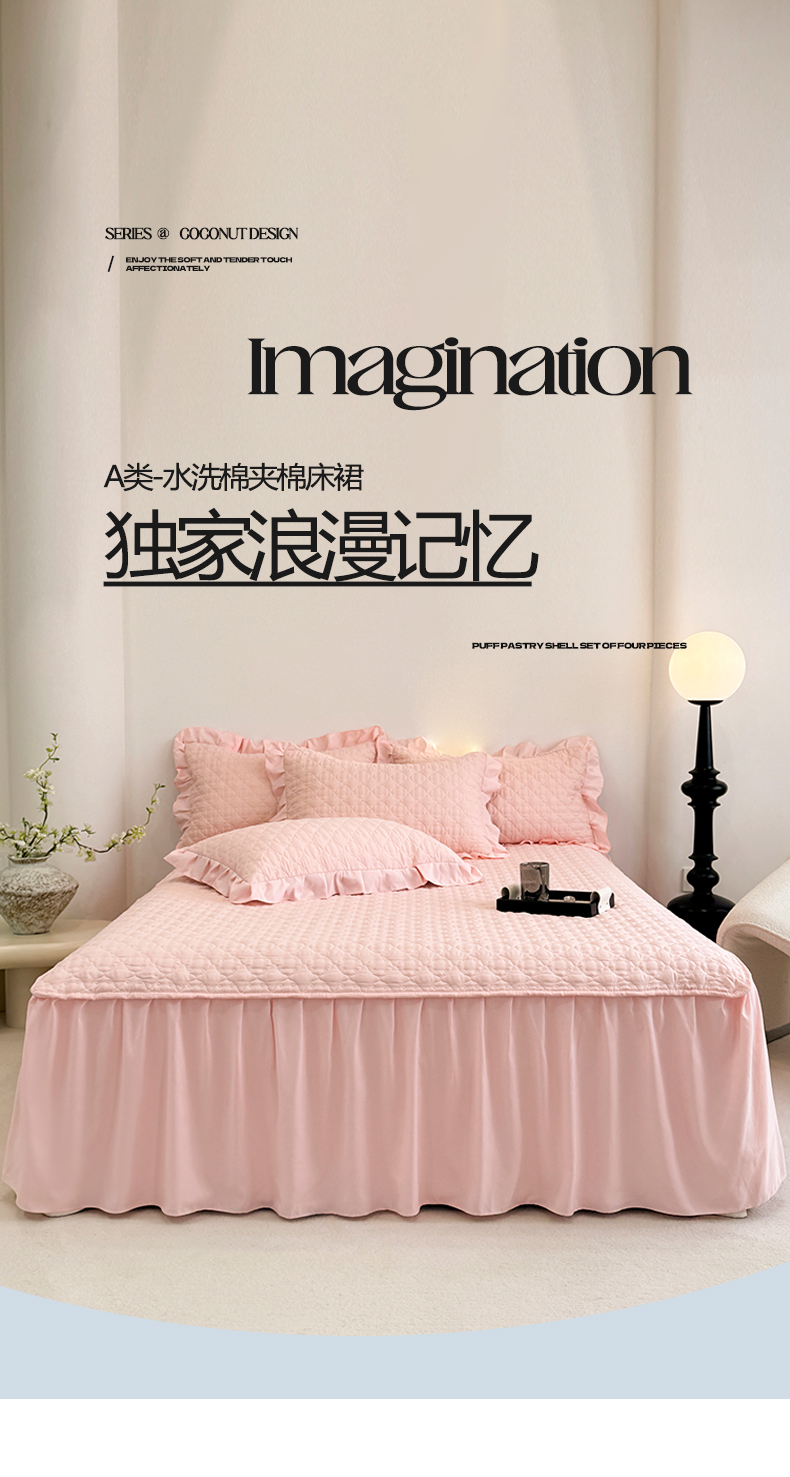 • 91家纺网 家纺一手货源 找家纺 (总)野合家纺 2026新款A类水洗棉纯色夹棉床裙单床裙床裙单件,豆沙,抹茶绿,浅紫,天蓝,银灰,玉色