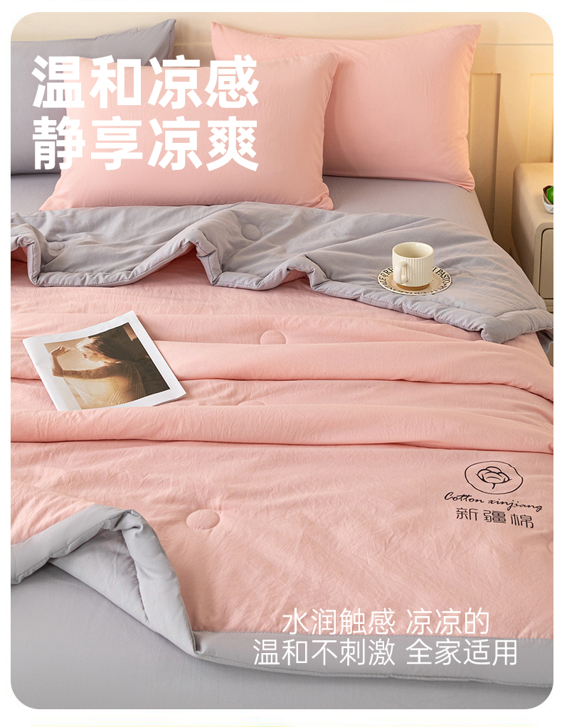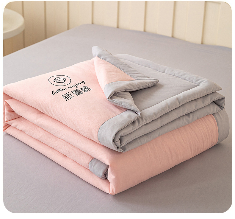 商品名称:安琪家纺 2026春夏新款A类新疆棉花纯色撞色双拼夏被夏凉被空调被 双拼-粉灰