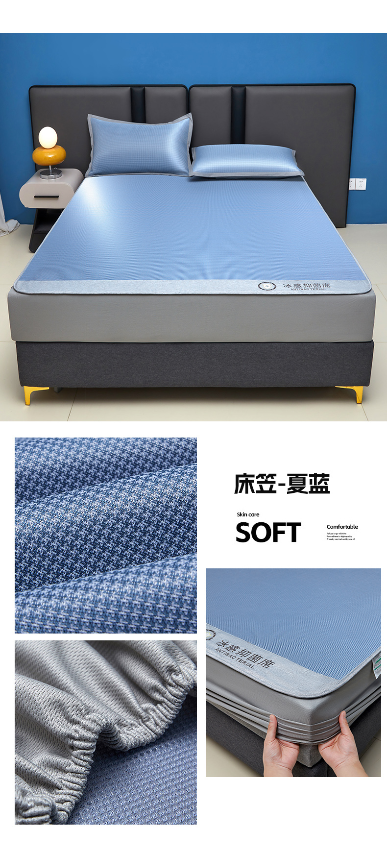 商品名称:(总)铺尚美家纺 2026 新款A类复合加厚三明治抗菌碳光冰丝席子凉席三件套
