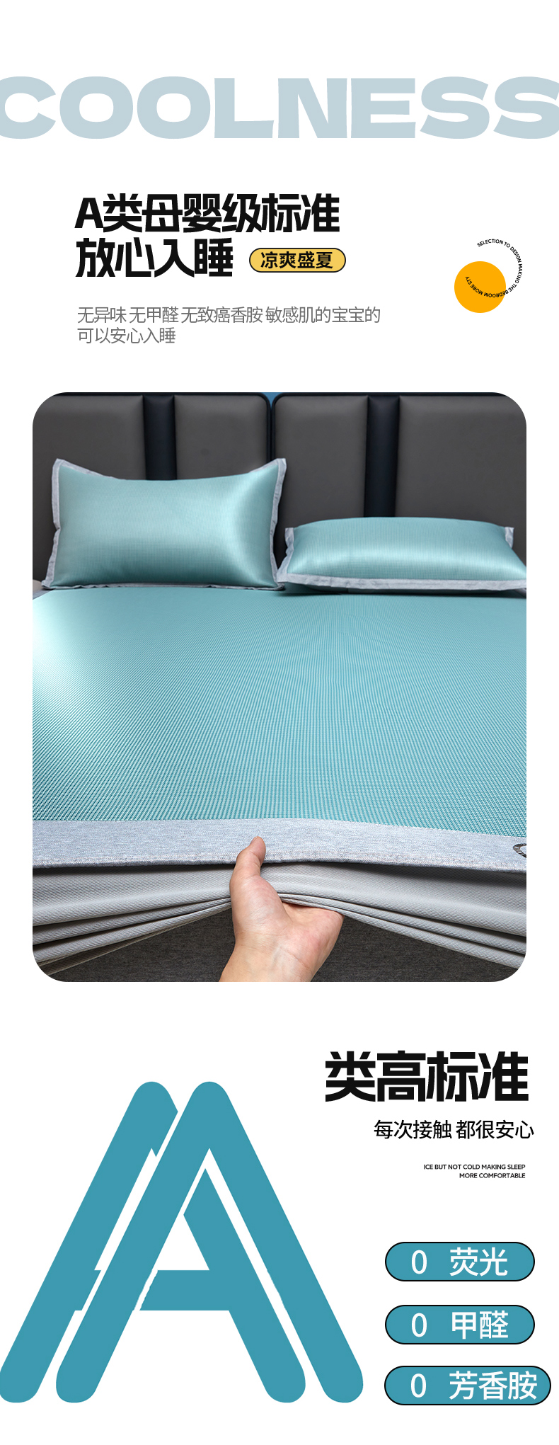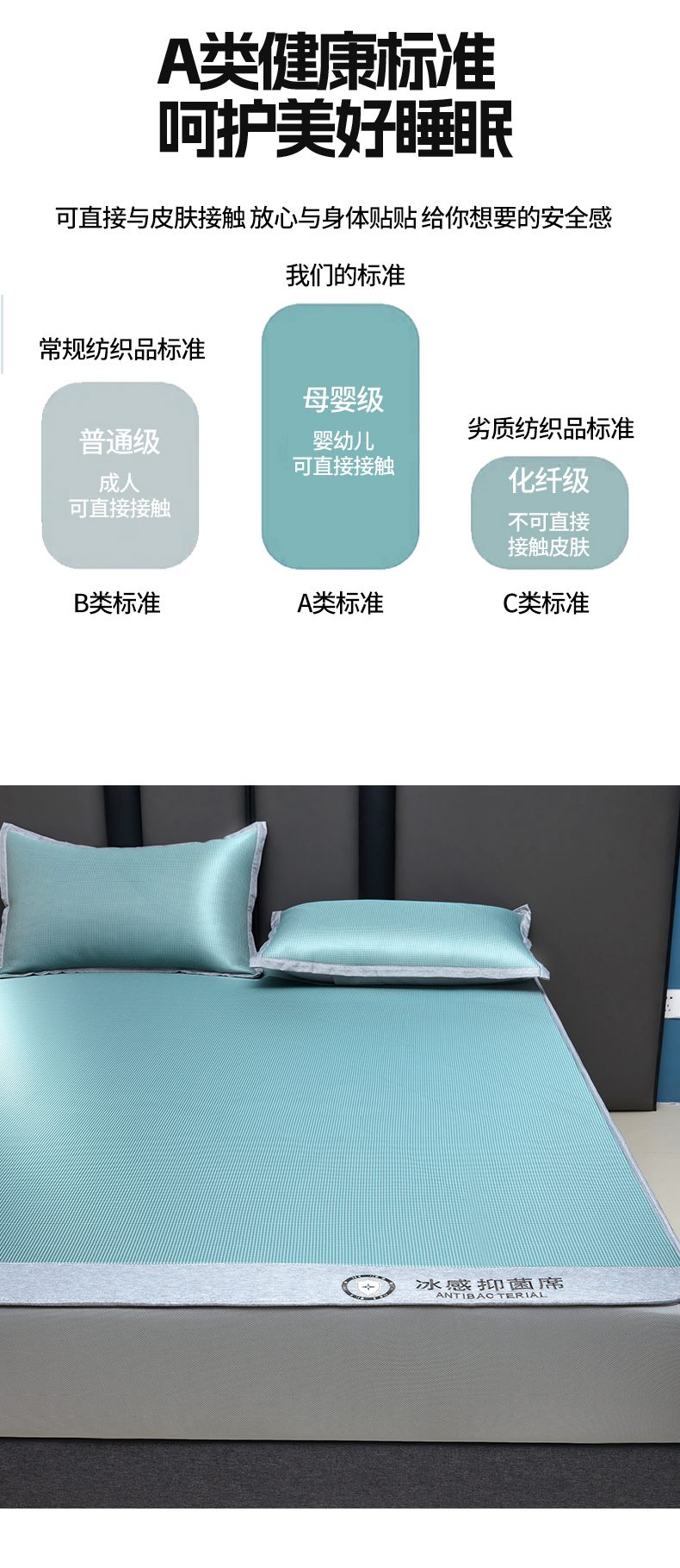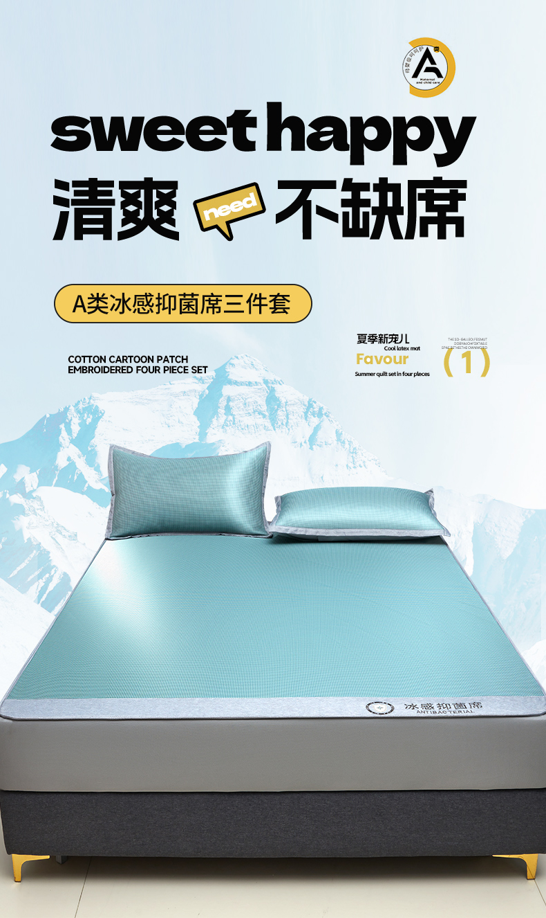 当前位置: 91家纺网 > 商品网购 > 床上用品 > 凉席 > 其他凉席 > 铺尚美家纺 2026 新款A类复合加厚三明治抗菌碳光冰丝席子凉席三件套 抗菌碳光水丝席床笠款-水绿