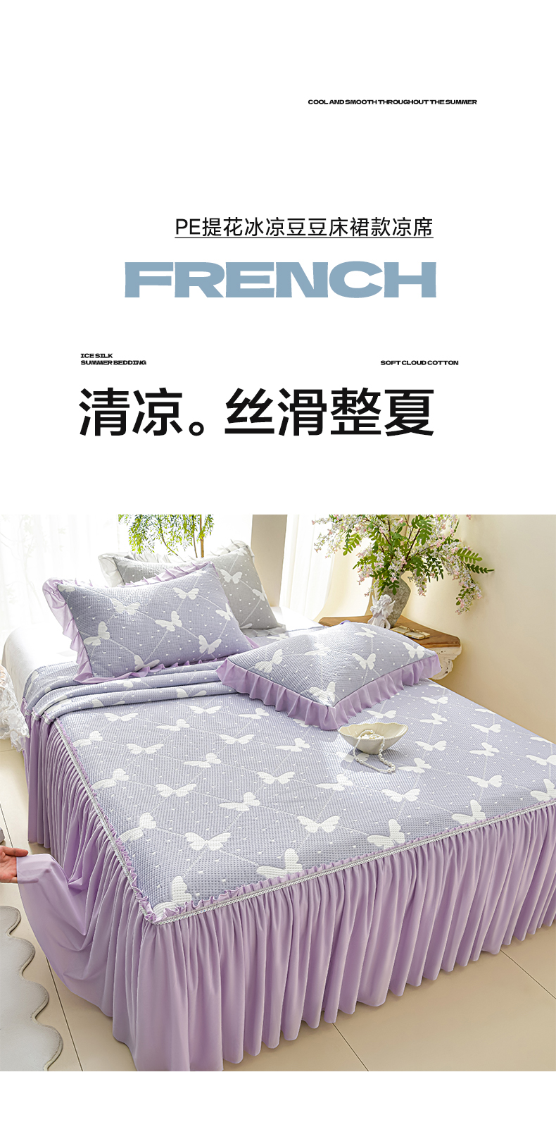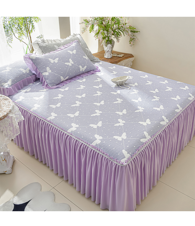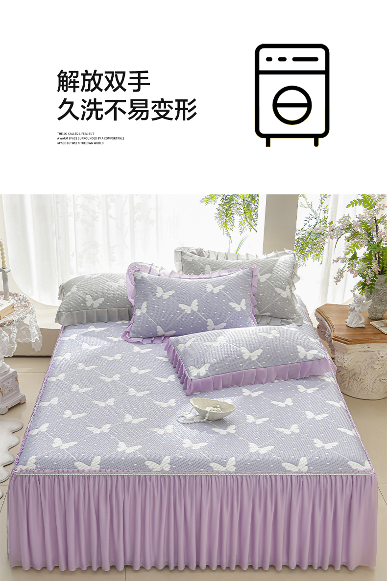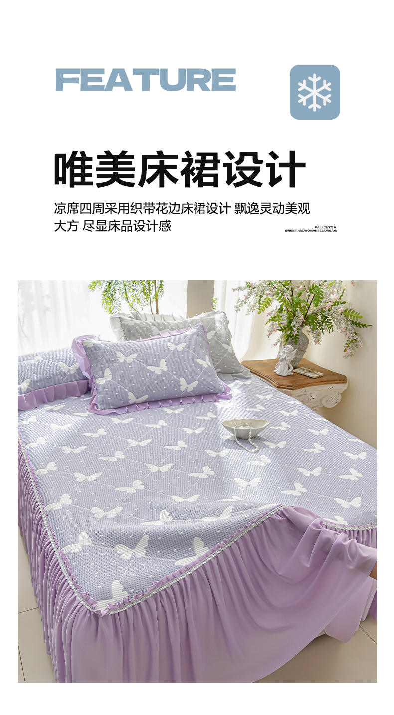商品名称:绘萱家居 2026春夏新款530克PE100%提花冰凉豆豆床裙款凉席席子空调软席 蝶儿轻舞-紫