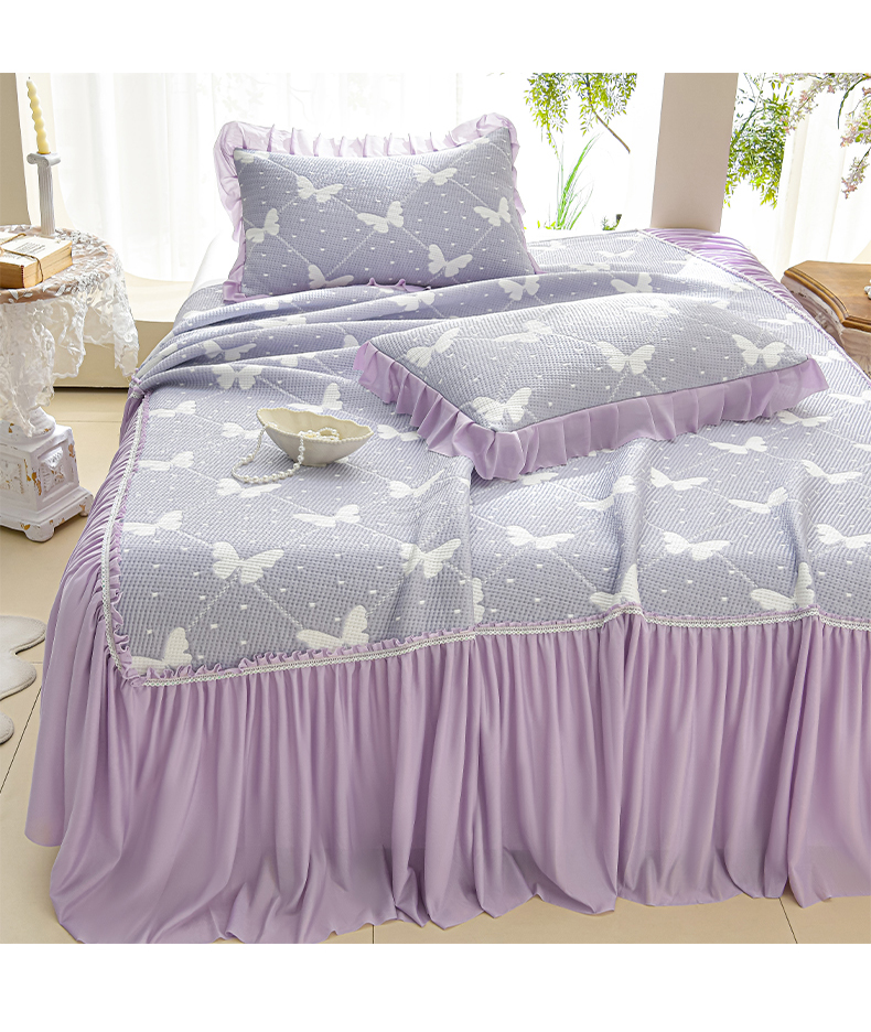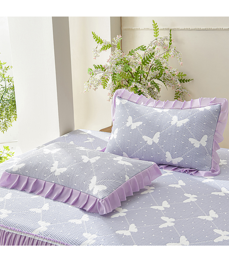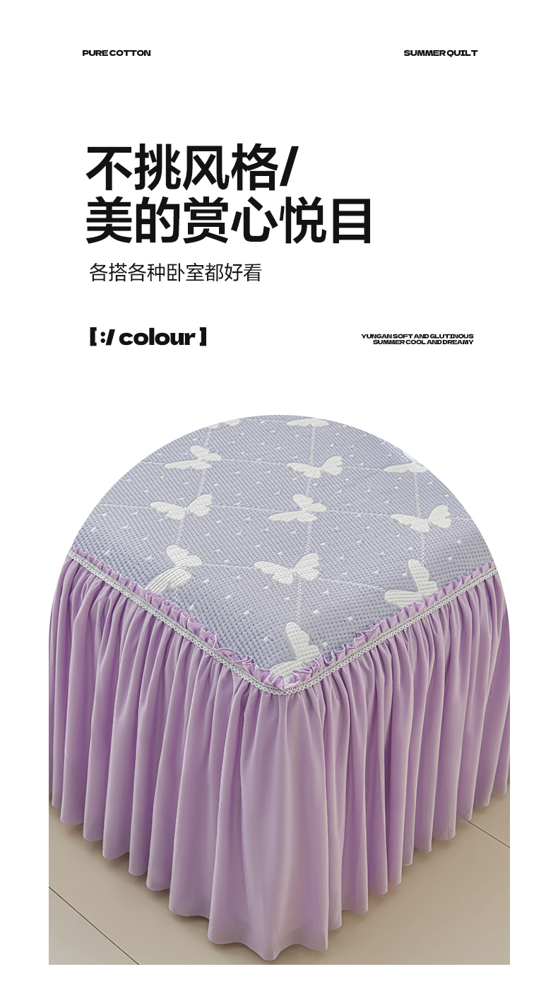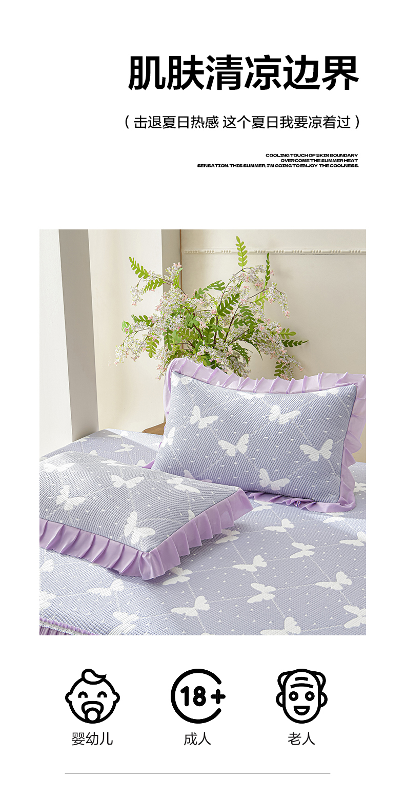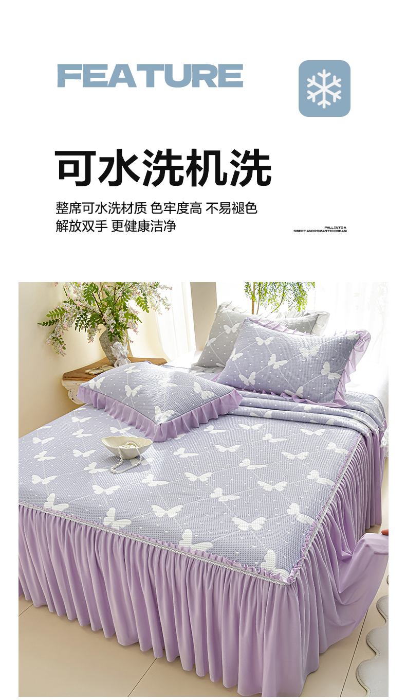 商品名称:绘萱家居 2026春夏新款530克PE100%提花冰凉豆豆床裙款凉席席子空调软席 蝶儿轻舞-紫