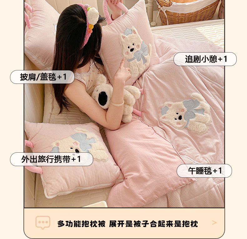 商品名称:番茄+ .2026新款甜雾西高地抱枕被 甜雾西高地-粉