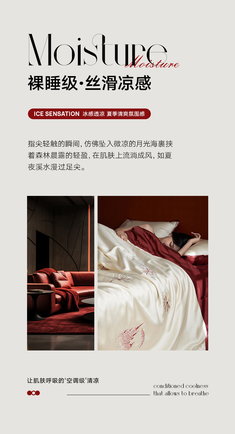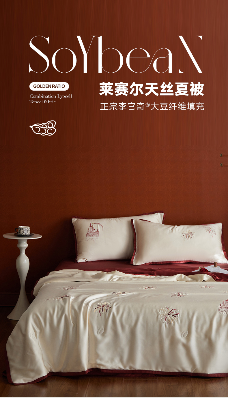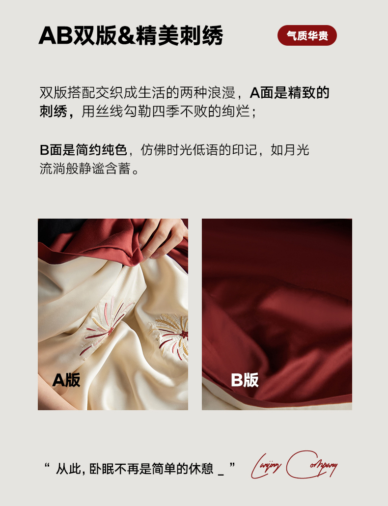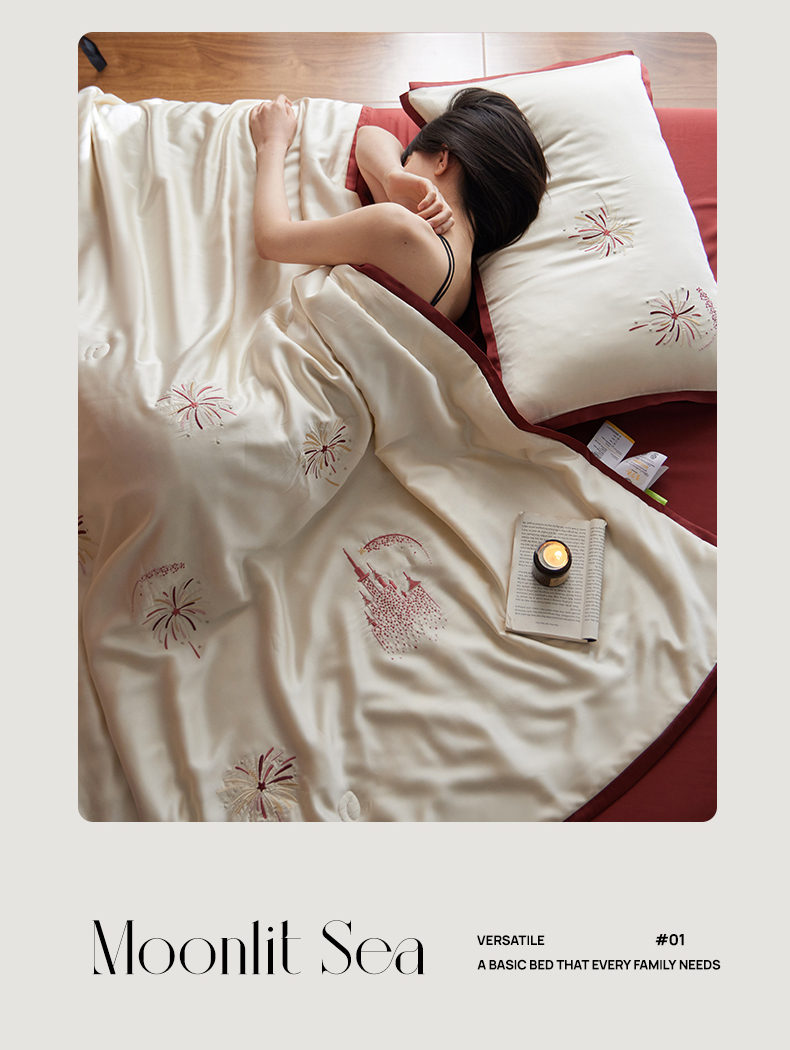 • 91家纺网 家纺一手货源 找家纺 风向标家纺 2026新款50s莱赛尔天丝夏被四件套-拼边红色系列 夏被-烂漫花火