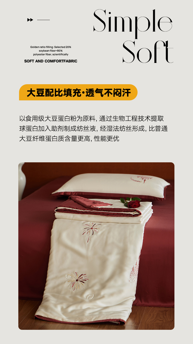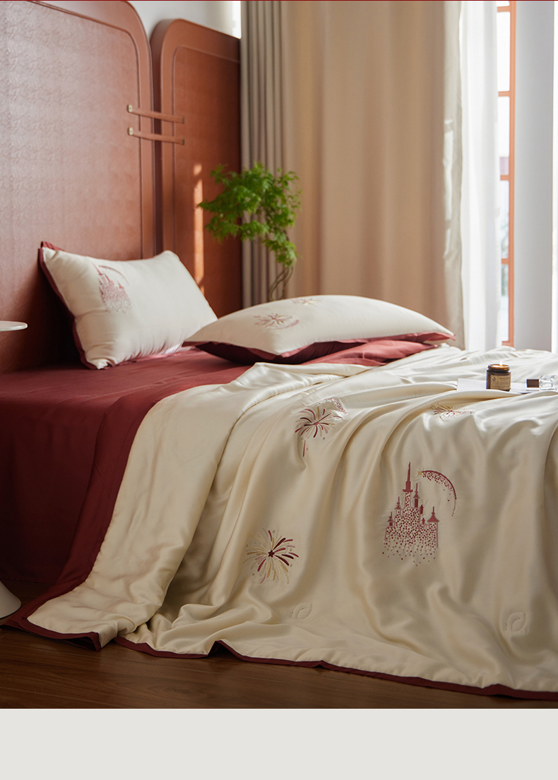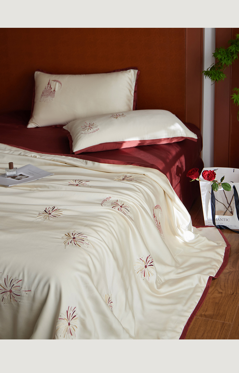 当前位置: 91家纺网 > 商品网购 > 被子 > 夏被 > 风向标家纺 2026新款50s莱赛尔天丝夏被四件套-拼边红色系列 夏被-烂漫花火