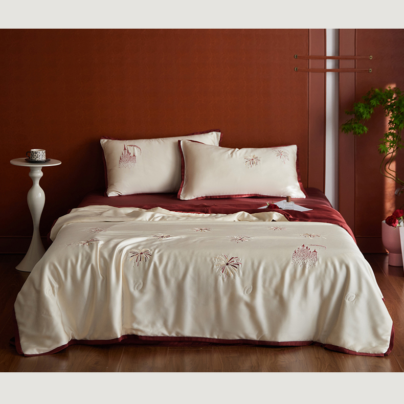 (总)风向标家纺 2026新款50s莱赛尔天丝夏被四件套-拼边红色系列,夏被-红色蝴蝶结,夏被-绮梦红蝶,夏被-烂漫花火