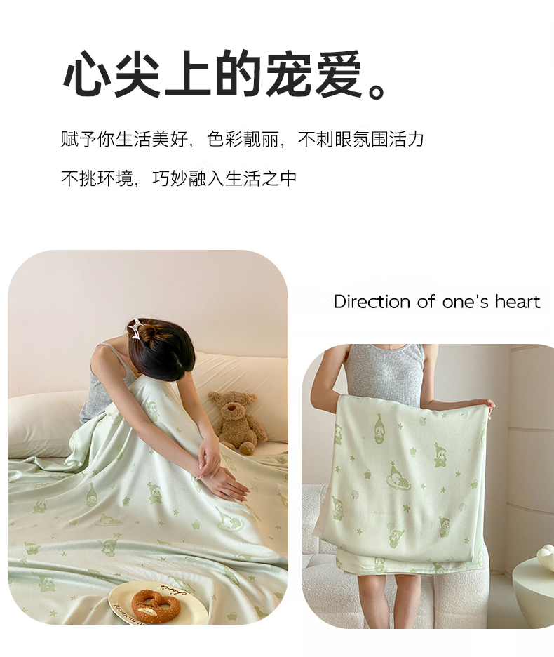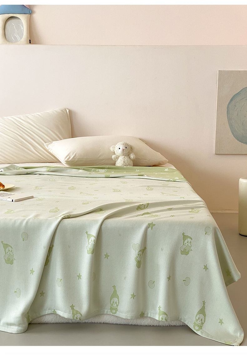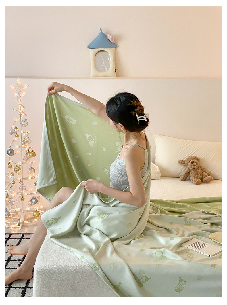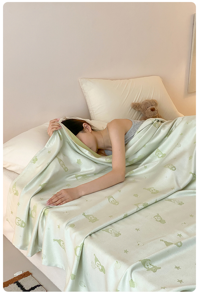 麻依 2026新款竹纤维单层毛巾被盖毯夏凉被冷感毯 竹星宝-绿色