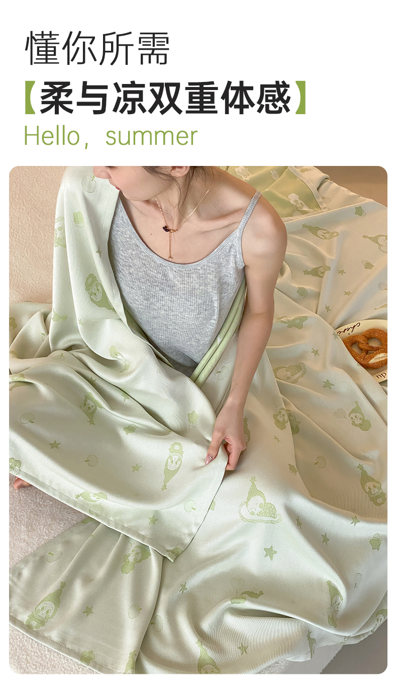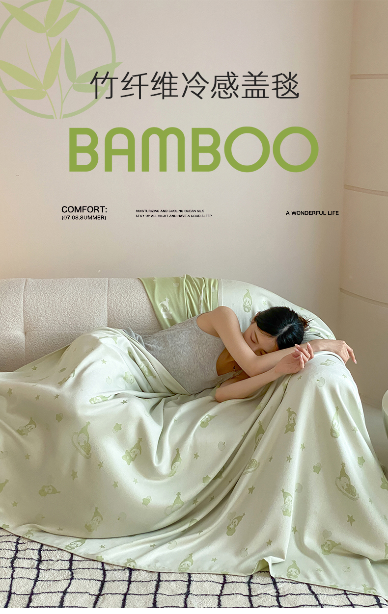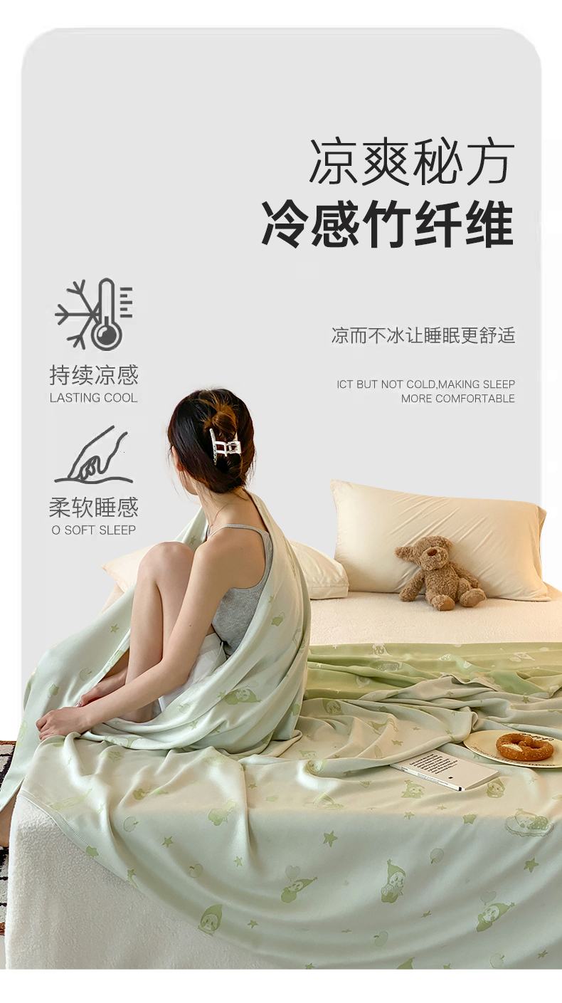 商品名称:麻依 2026新款竹纤维单层毛巾被盖毯夏凉被冷感毯 竹星宝-绿色