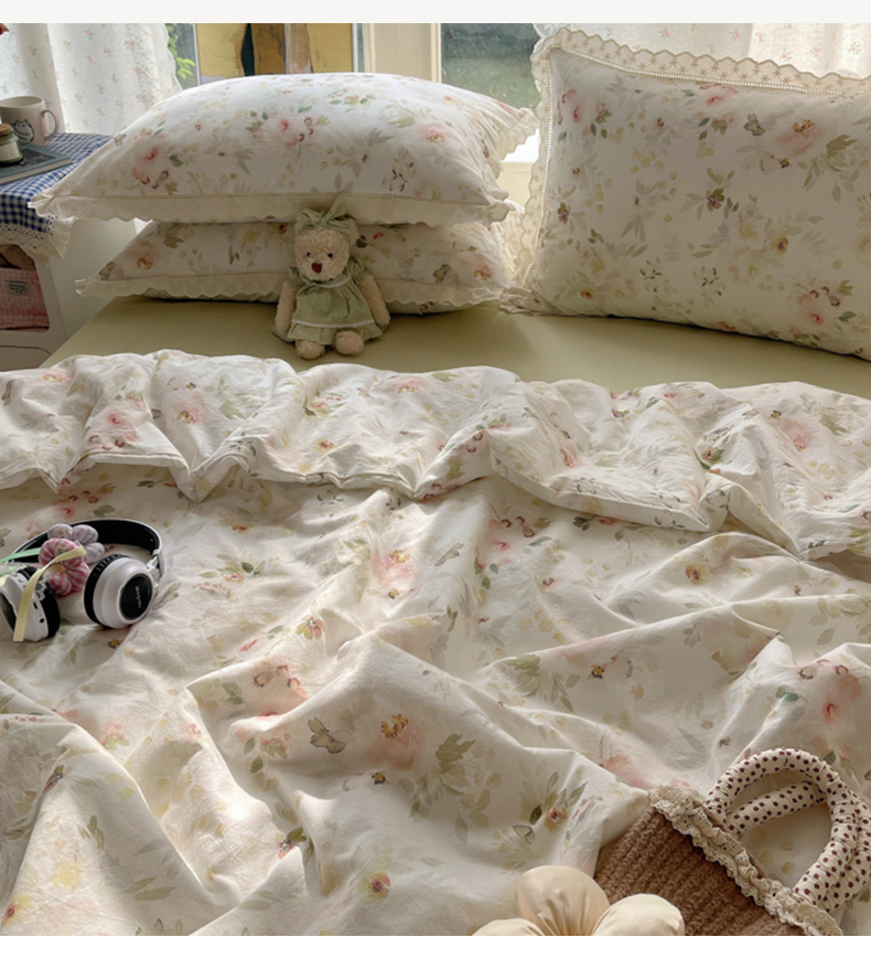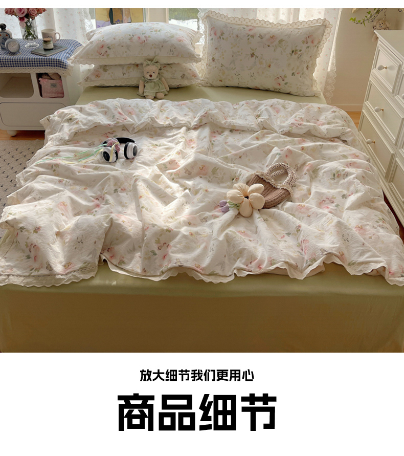 (总)爱彼家纺 2026春夏新款韩式花边泡芙棉床单款夏被夏凉被空调被四件套,海盐蓝波点,奶粉波点,奶红波点,奶灰波点
