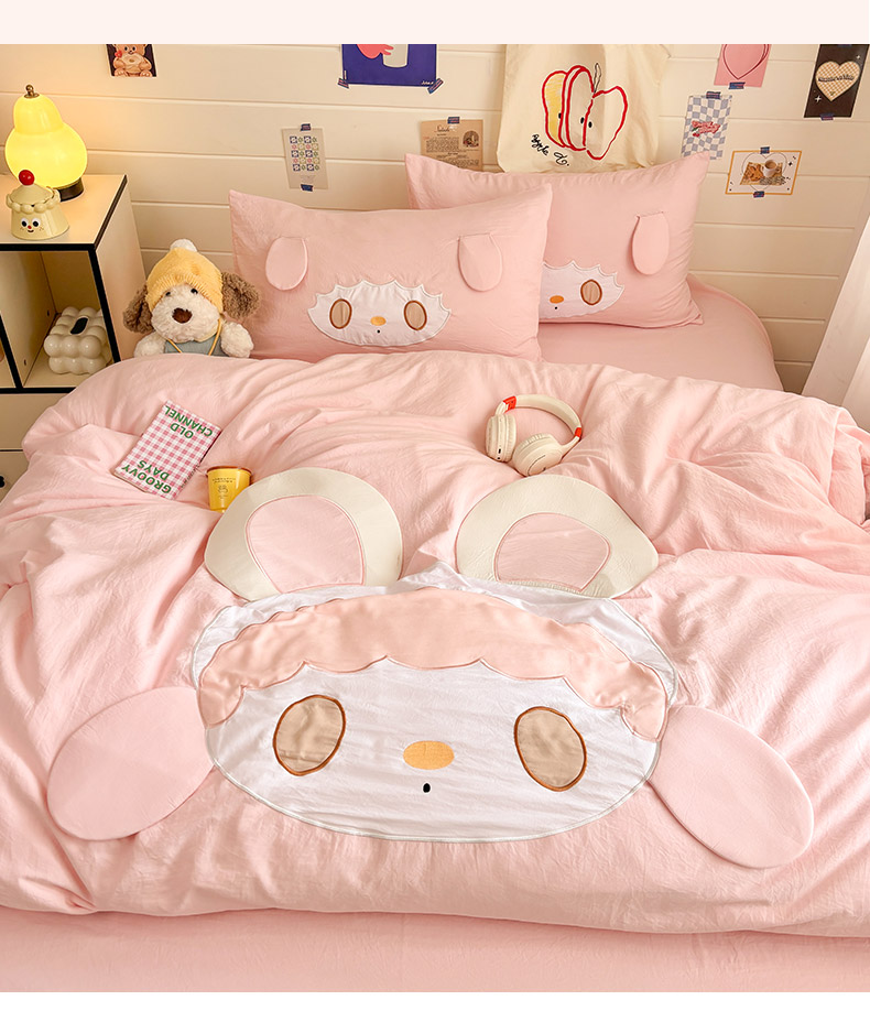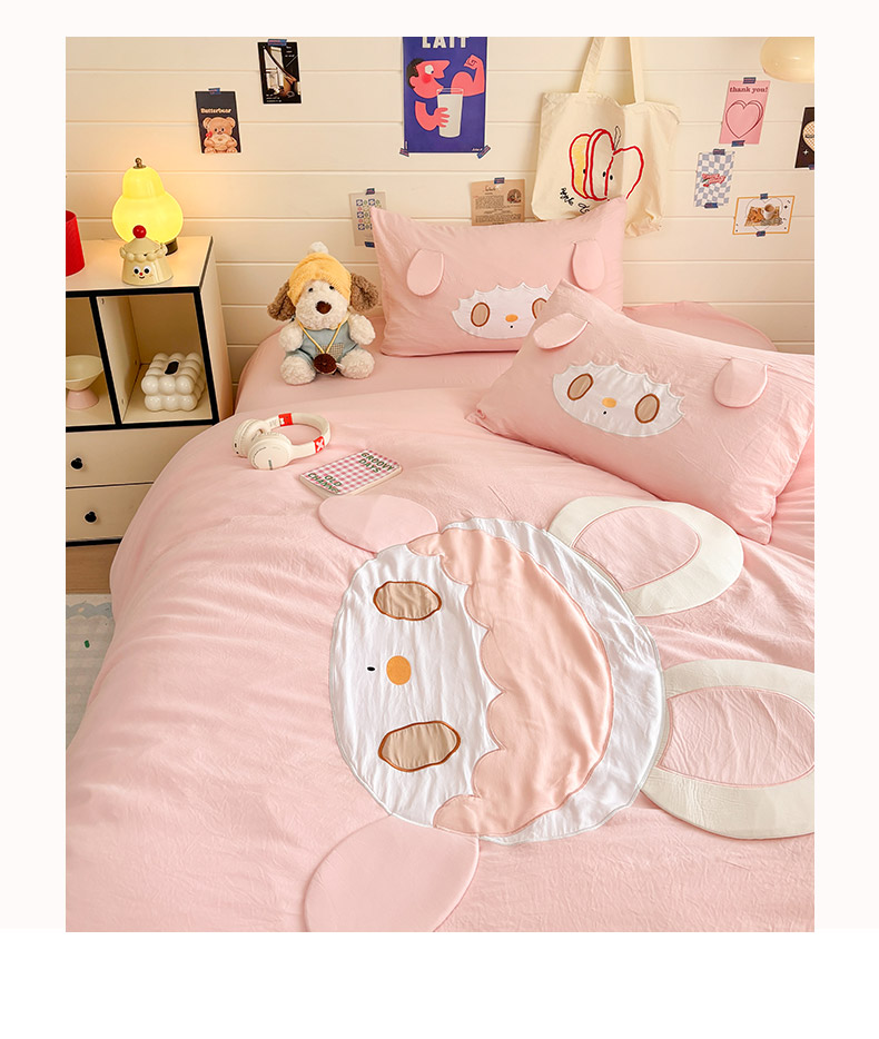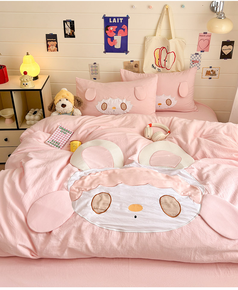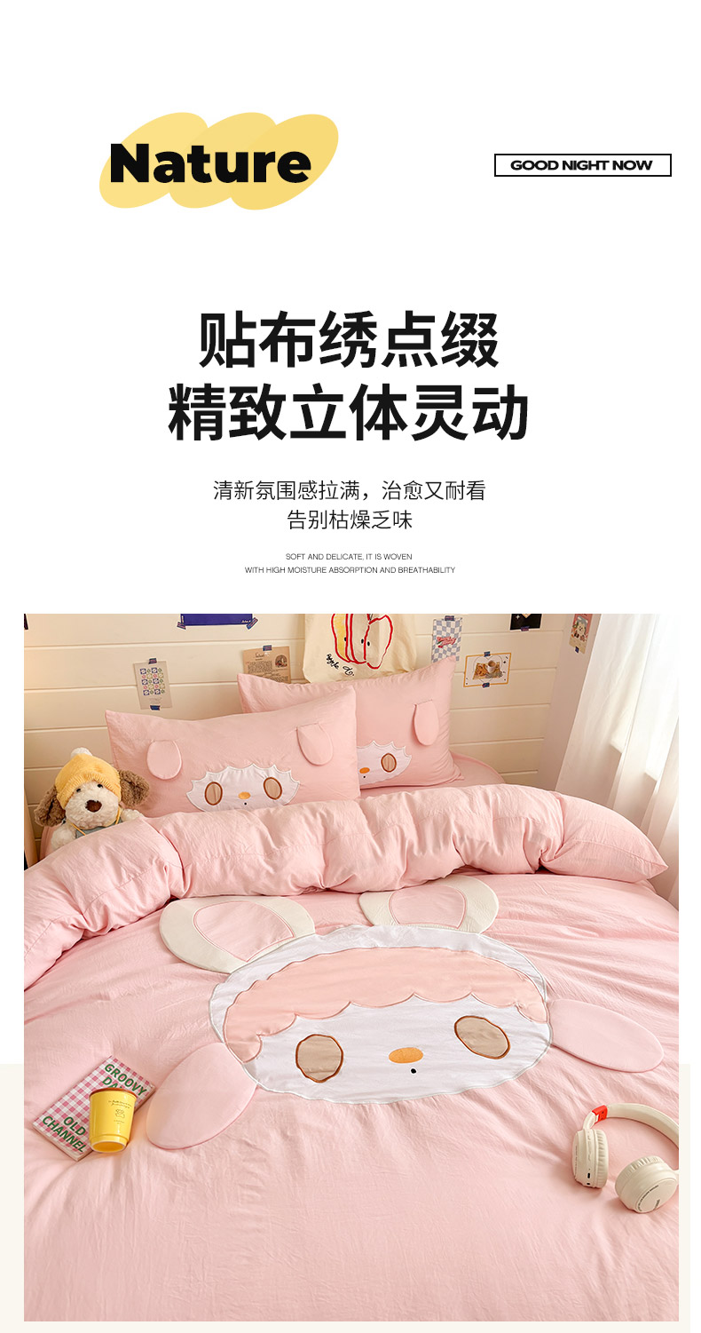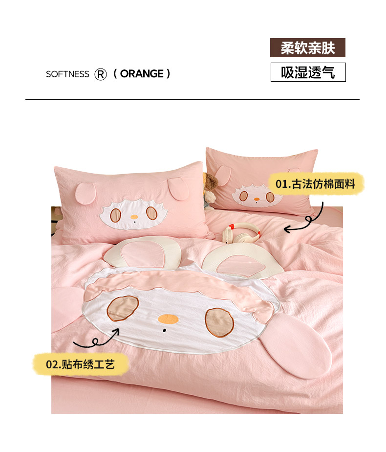 色鬼布艺高端家居主号 2026新款韩国设计师款仿古棉可爱毛巾绣四件套 兔兔女孩