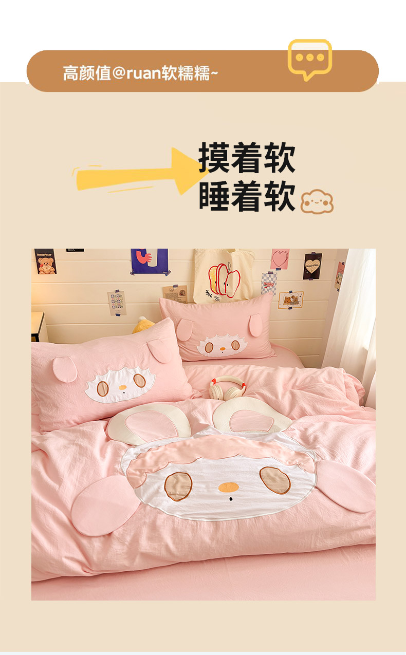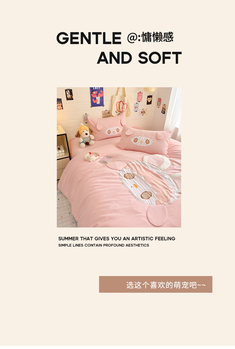(总)色鬼布艺高端家居主号 2025秋冬新款网红款水洗棉四季款四件套,豹纹熊-粉,豹纹熊-绿,彩虹兔,格子熊,公仔蓝,梦幻粉,梦幻蓝,棋盘格公仔,太阳花粉,天使熊-粉,天使熊-咖,小熊头,熊头白,熊头橙,熊头咖,熊仔白