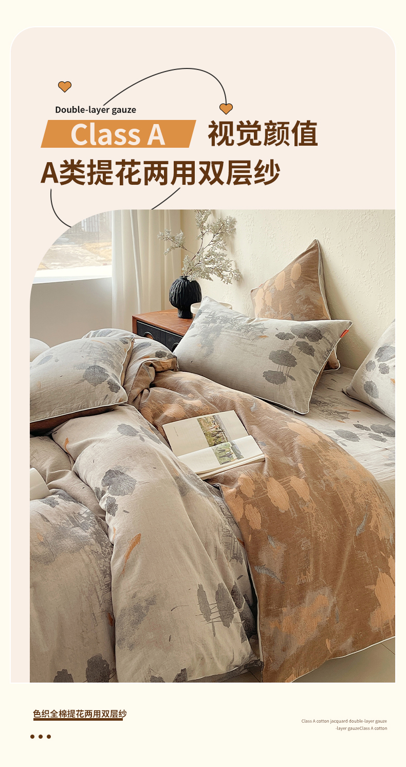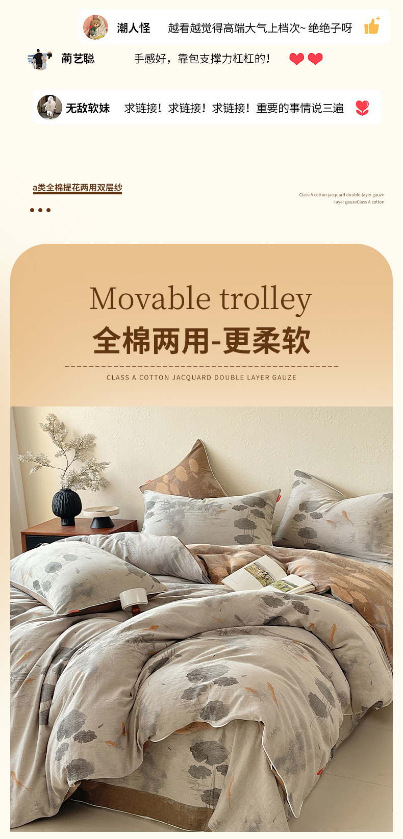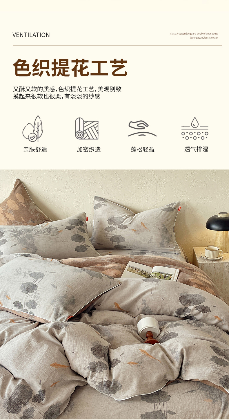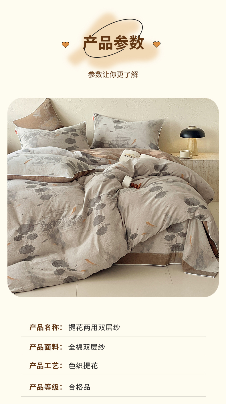 当前位置: 91家纺网 > 商品网购 > 床品套件 > 四件套 > 全棉普通四件套 > 春皖家纺 2026新款提花双层纱纯棉全棉四件套 思柔-烟灰