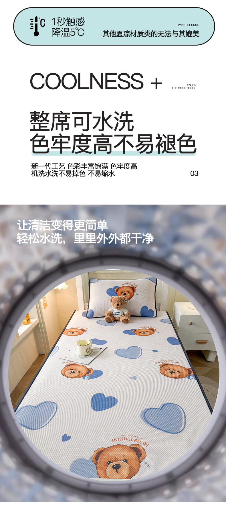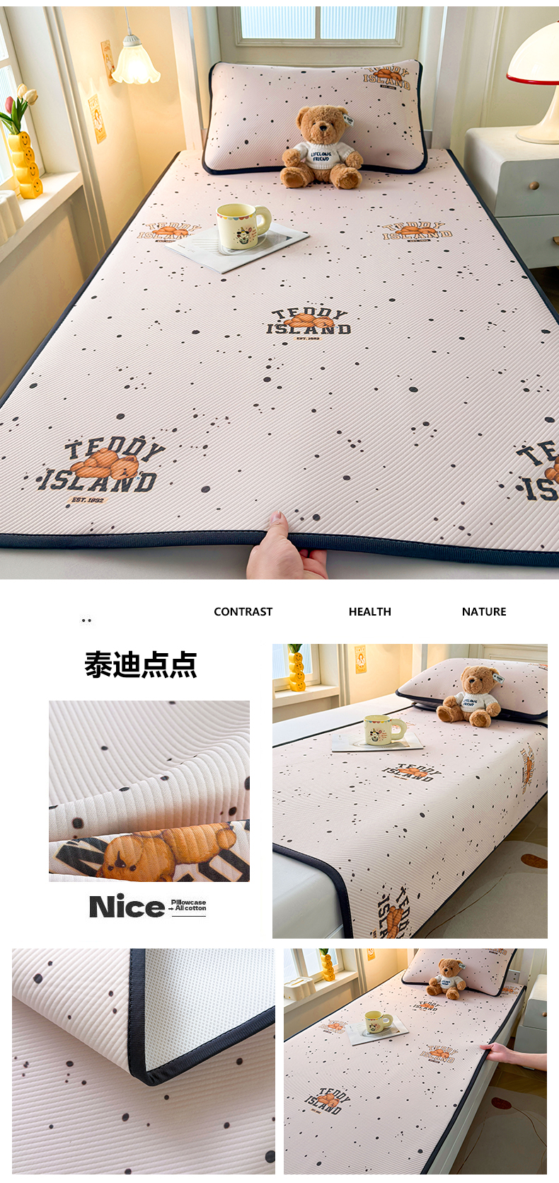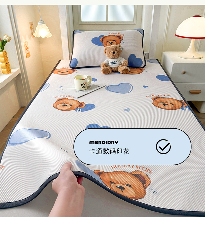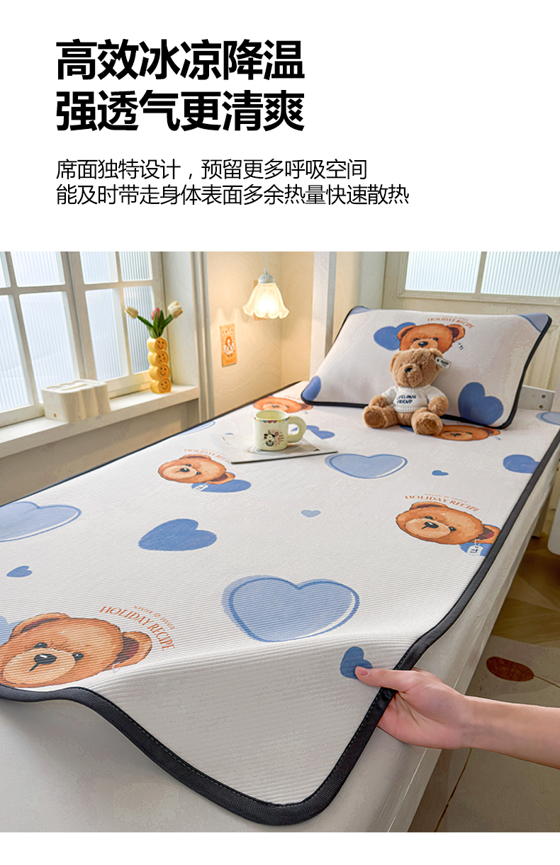 当前位置: 91家纺网 > 商品网购 > 床上用品 > 凉席 > 凉席套件 > 源舍家纺 2026新款泰迪爱兰系列(正版授权)A类三明治复合印花斜纹豆豆软凉席学生床 泰迪蓝心