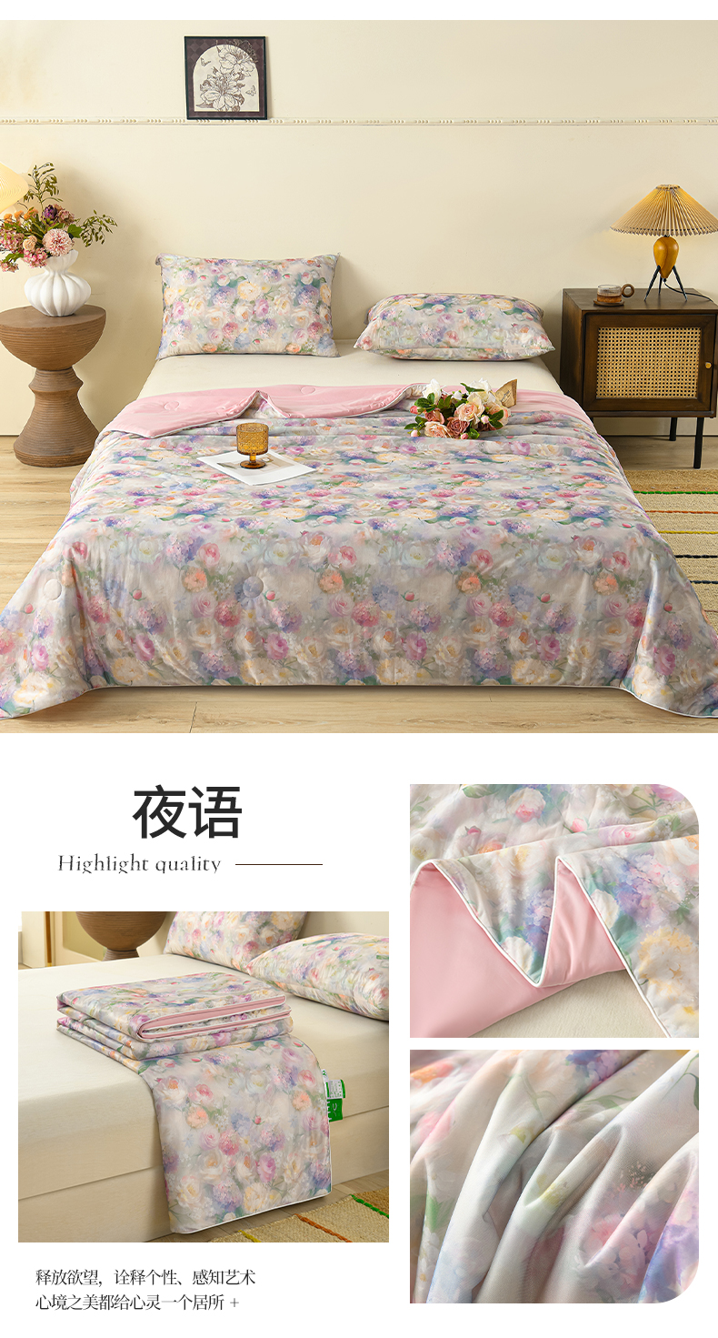 (总)曼尼 2026新款印花凉感丝夏被夏凉被,春晓,繁华,烂漫,柒月,浅月,倾城,天雅,星辰,夜语,爱的花海,爱丽丝,繁花映彩,国色天香,郁金香,玫瑰的故事,莫奈花园,蔷薇花开-紫,岁月静好,微微安,紫苏