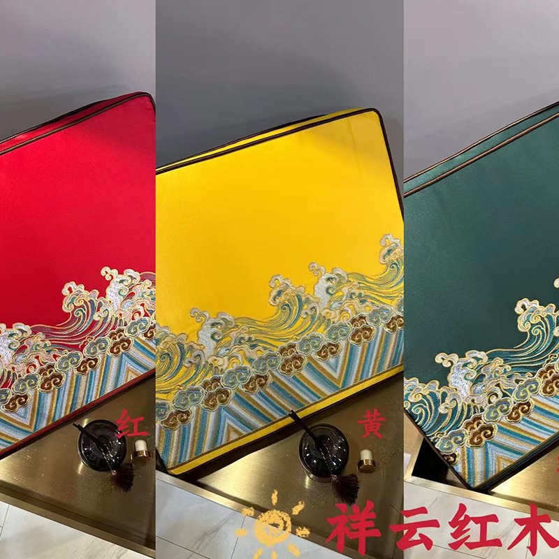 (总)多米家居 2026新款绒布绣花定制红木坐垫、抱枕、桌旗,海绵,乳胶(定制尺寸联系商家),绒布绣花款(下单联系商家)
