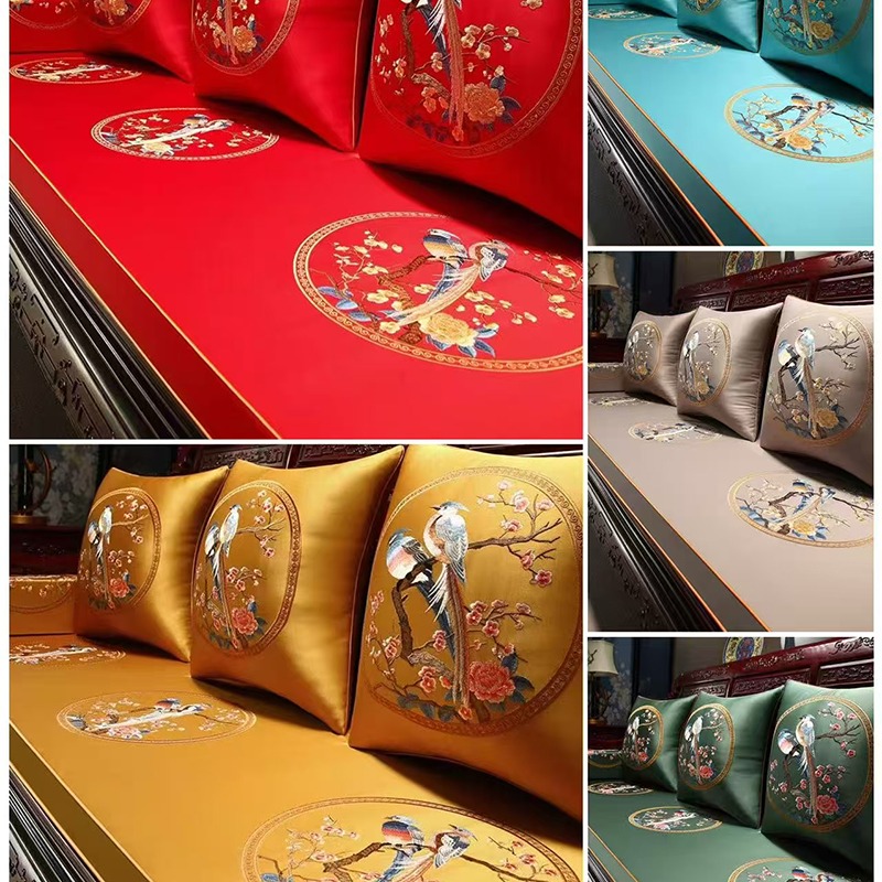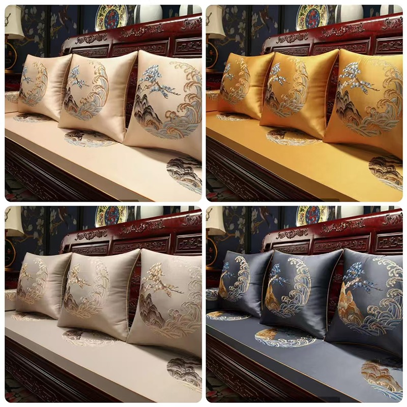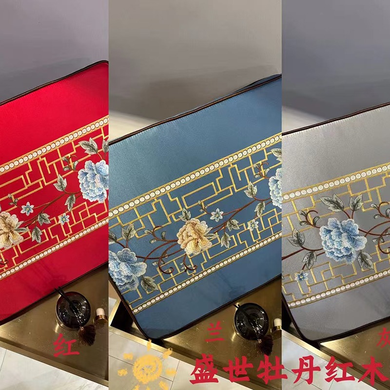 (总)多米家居 2026新款高精密绣花定制红木坐垫、抱枕、桌旗,海绵,乳胶(定制尺寸联系商家)