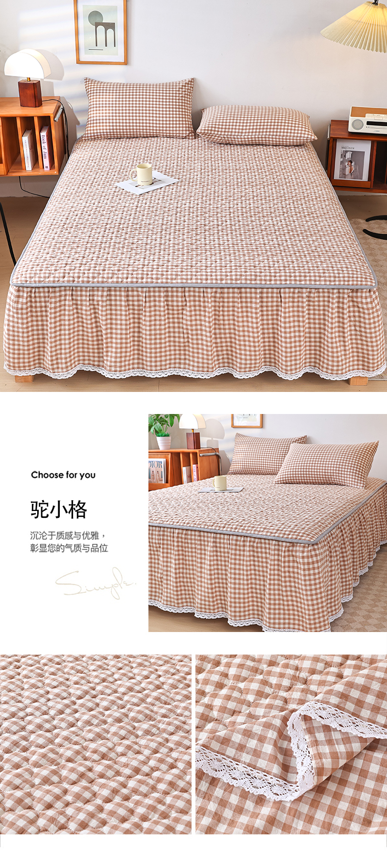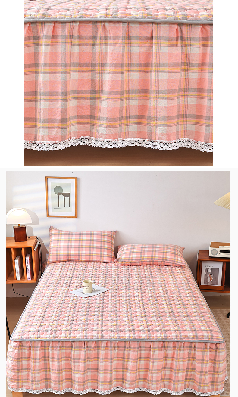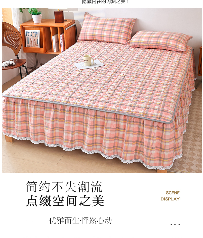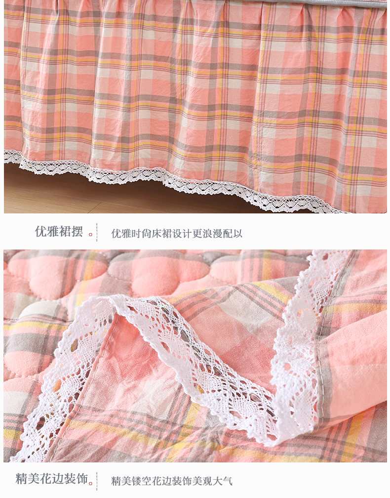 欧妮家纺 2026新款全棉色织水洗棉夹棉床裙 全棉色织水洗棉-柔粉格