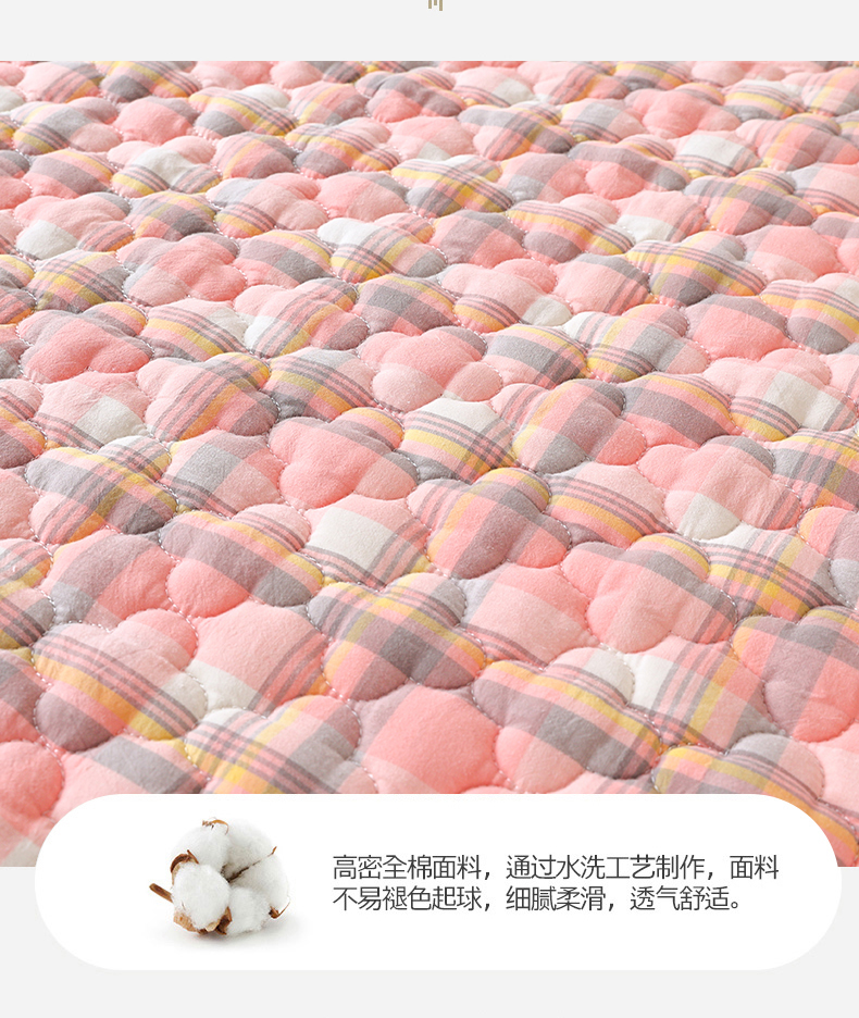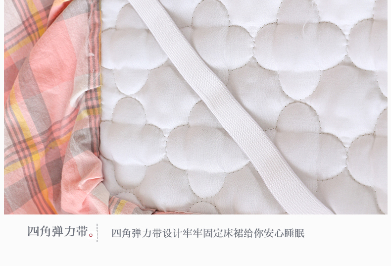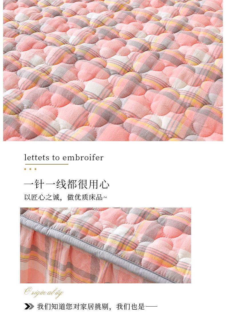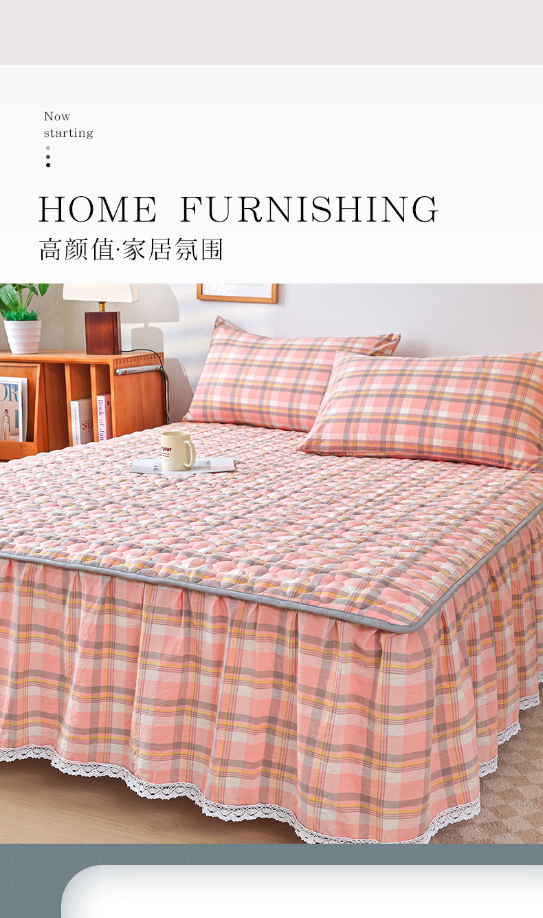 欧妮家纺 2026新款全棉色织水洗棉夹棉床裙 全棉色织水洗棉-柔粉格