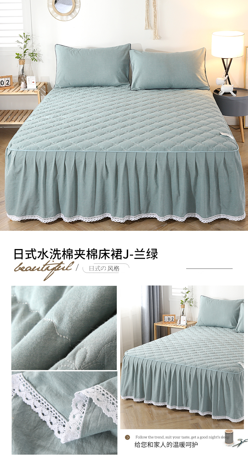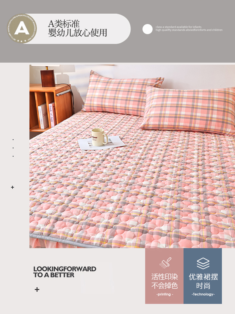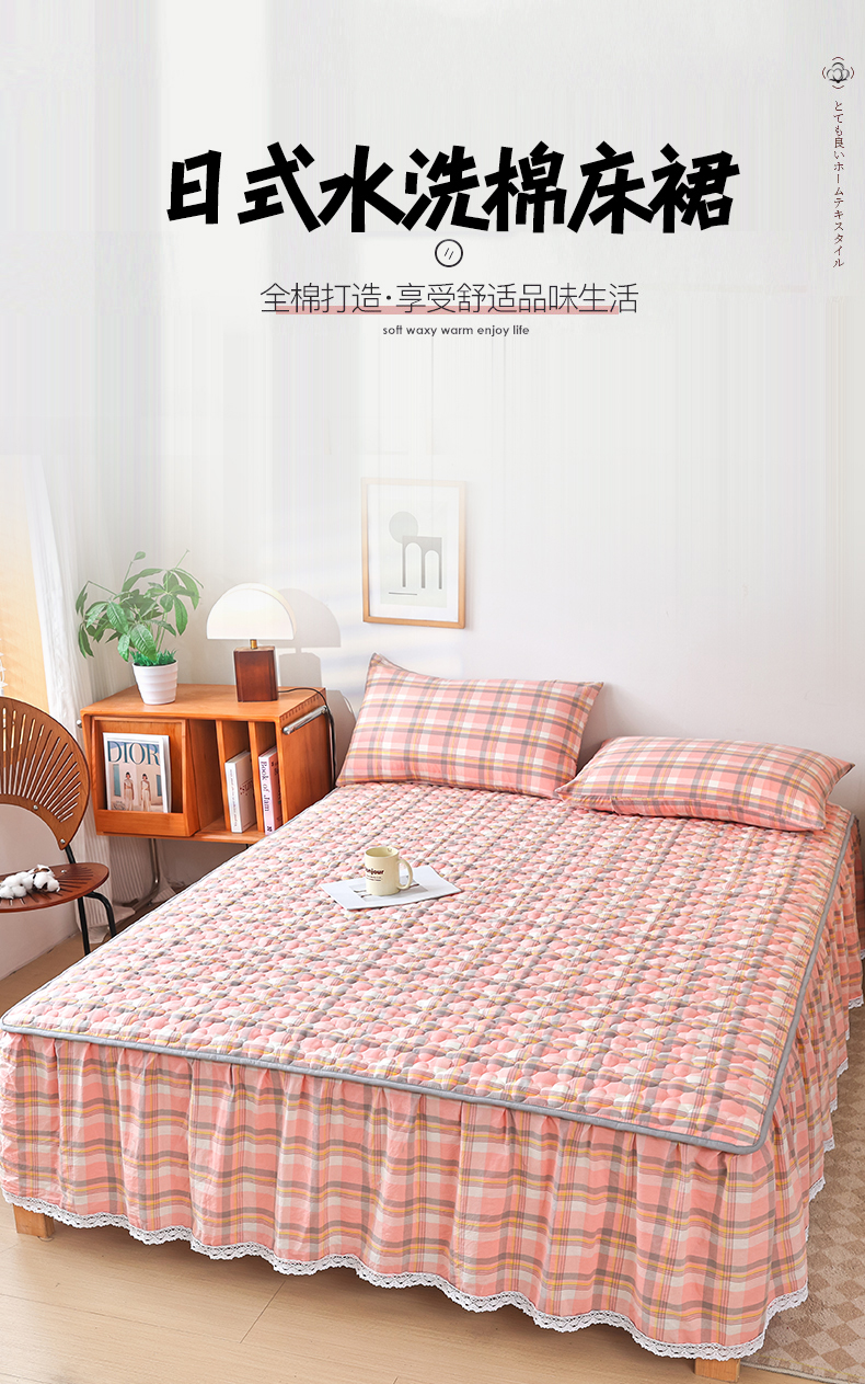 • 91家纺网 家纺一手货源 找家纺 欧妮家纺 2026新款全棉色织水洗棉夹棉床裙 全棉色织水洗棉-柔粉格