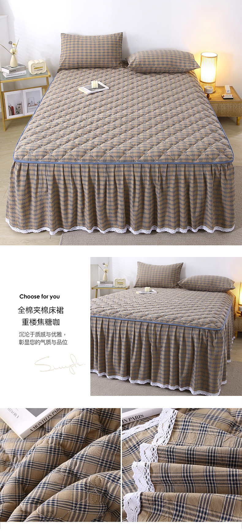 当前位置: 91家纺网 > 商品网购 > 床上用品 > 床裙 > 欧妮家纺 2026新款无印全棉水洗棉夹棉单床裙-三件套 全棉夹棉床裙重楼焦糖咖