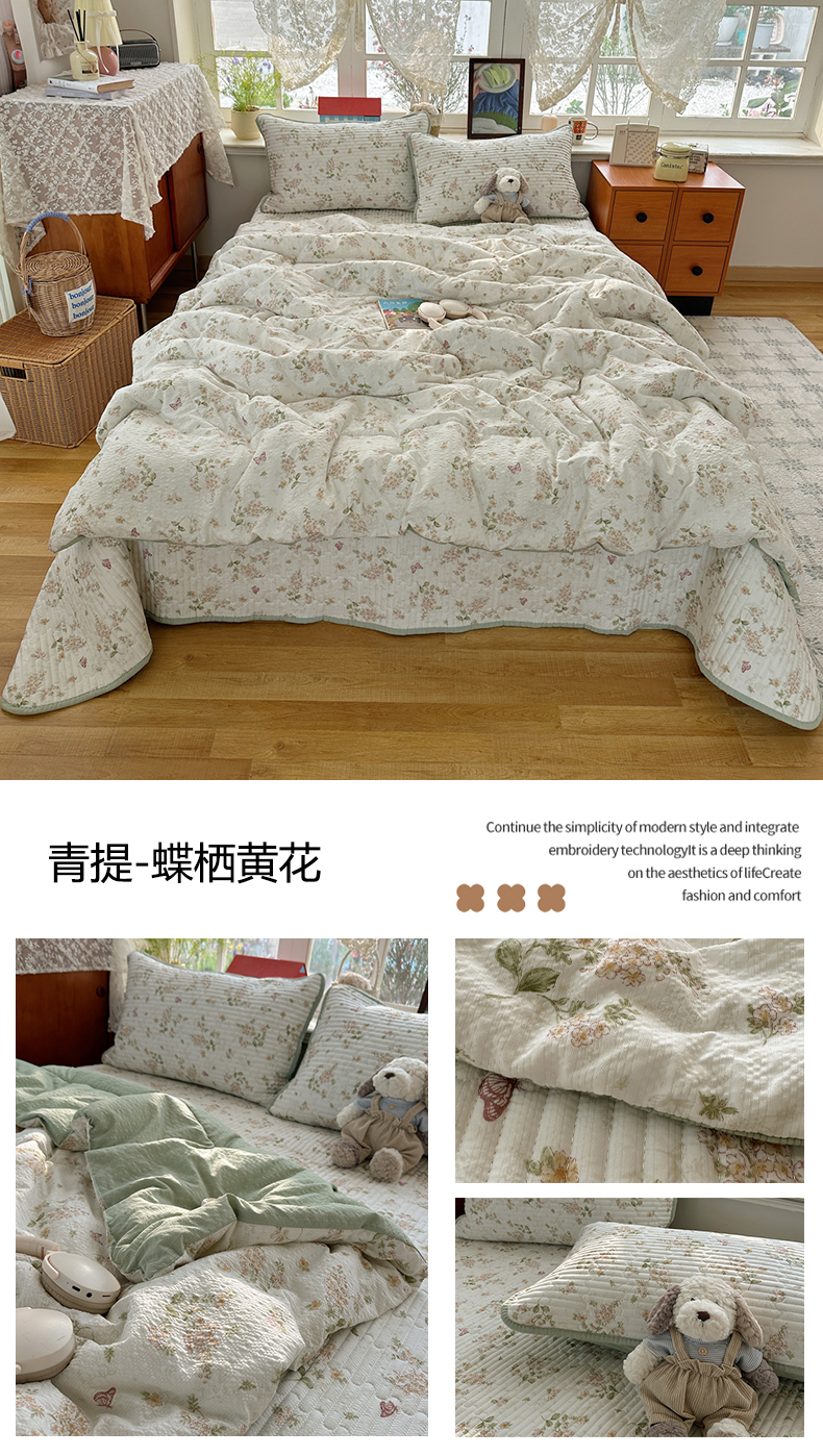 (总)贝扬思家纺 2026春夏新款高品质A类泡芙纱床盖夏被夏凉被空调被四件套-青提系列