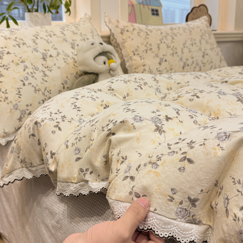 漫仙阁家纺 2026新款云感泡芙棉夏被四件套 槿上花开