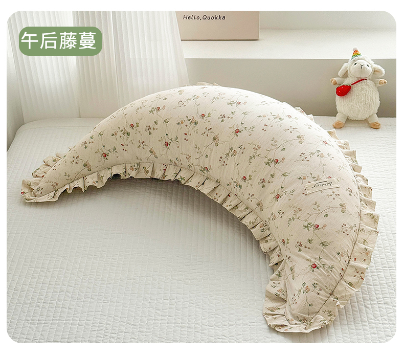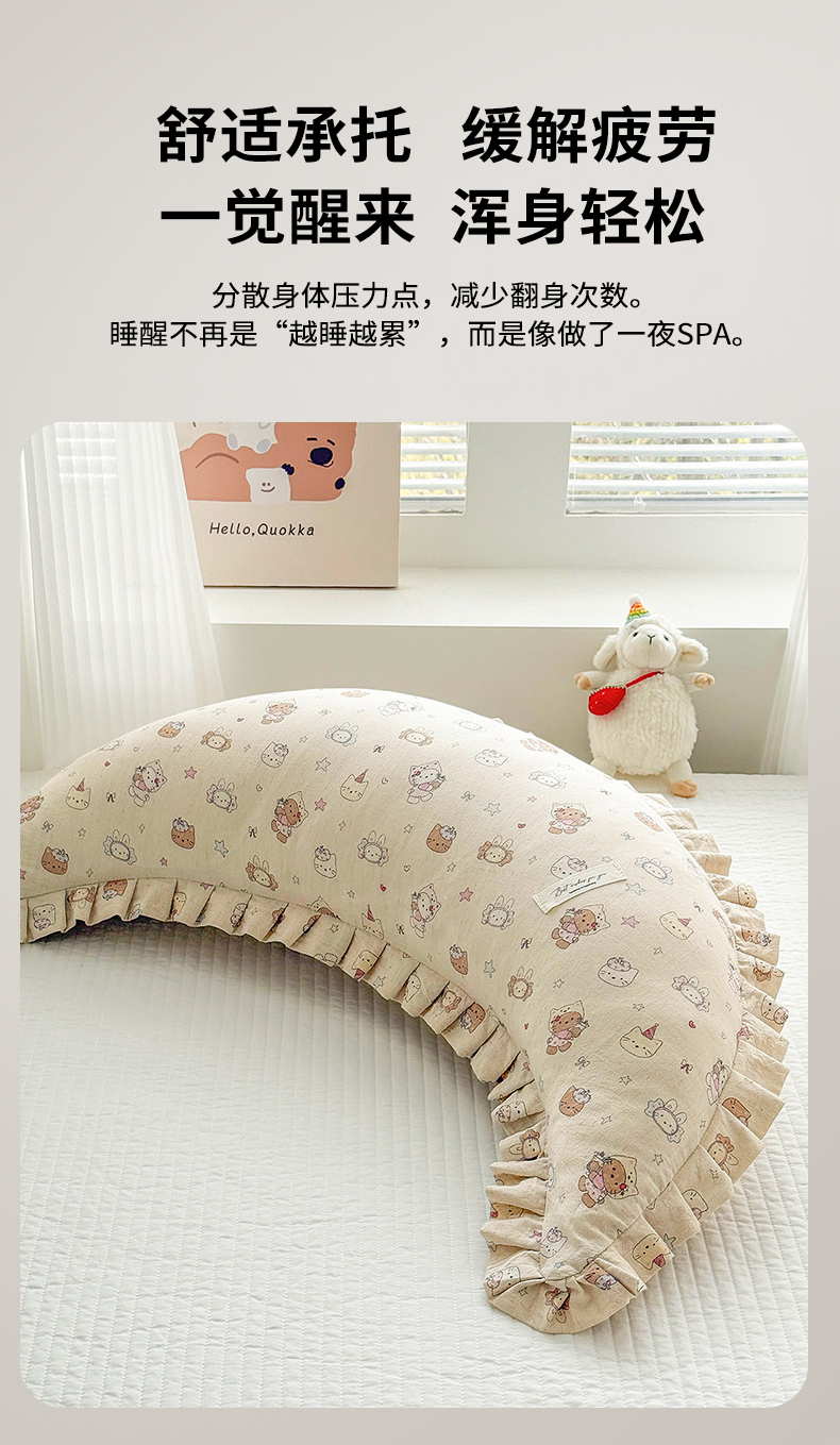 商品名称:(总)蔻眠 升级款棉麻花边月亮长抱枕夹腿抱枕芯多功能月亮枕头