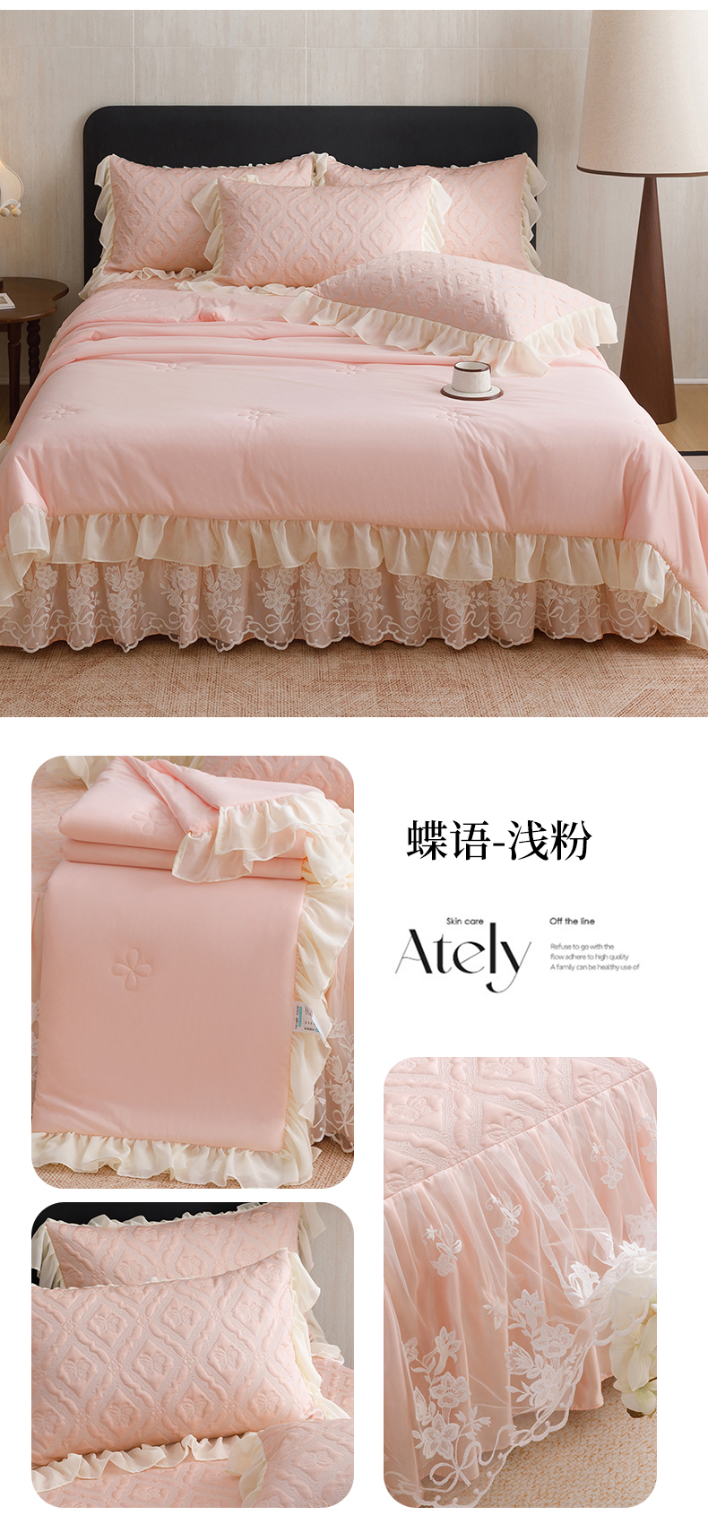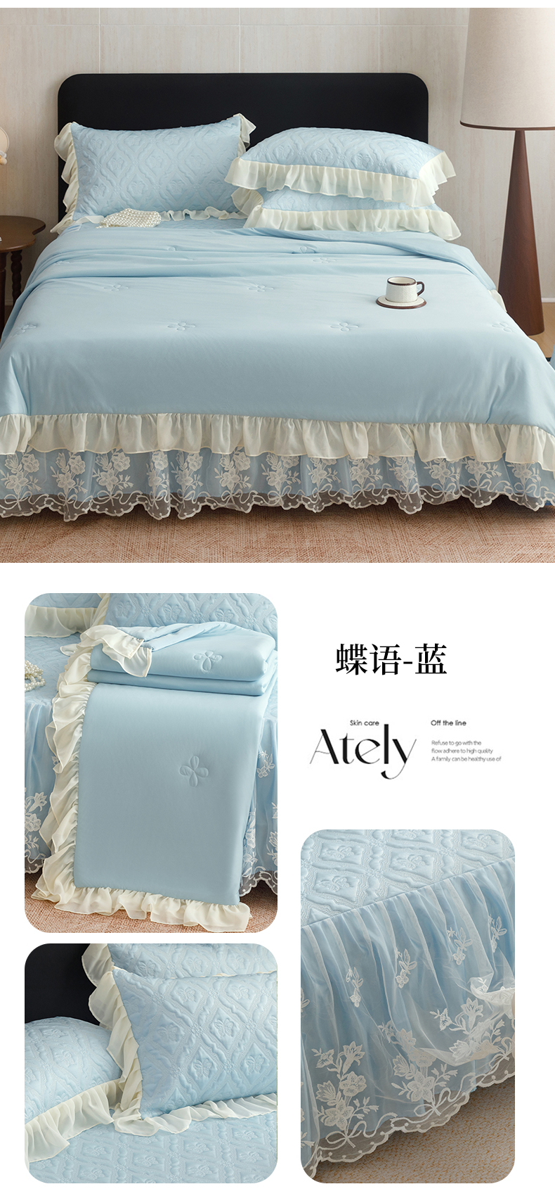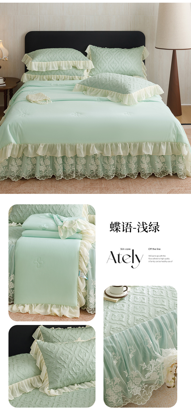 (总)好儿喜家纺 2024新款伊芙琳夏被凉席床裙四件套,浅绿,橄榄绿,奶白,浅粉,浅蓝