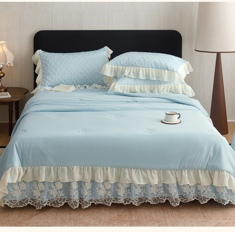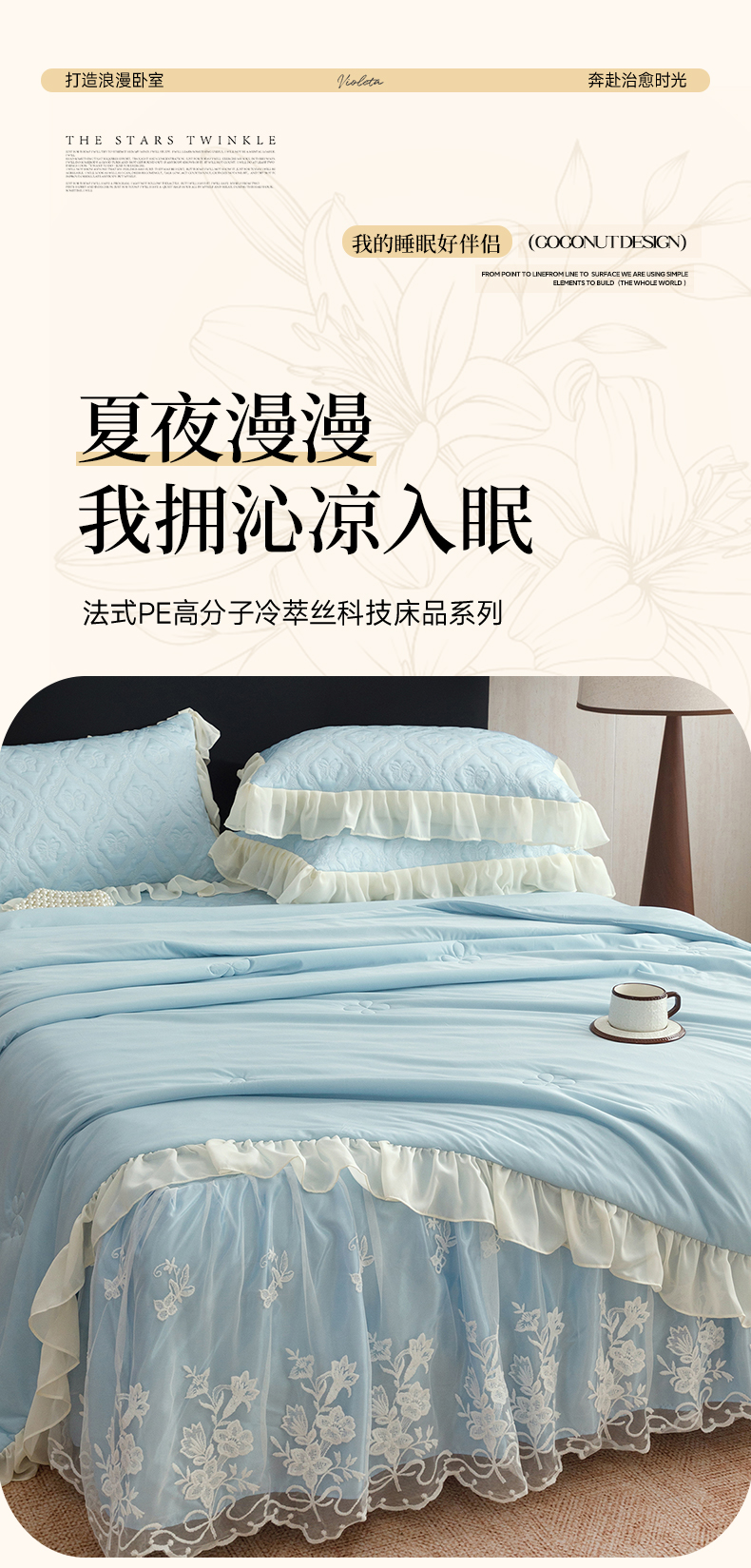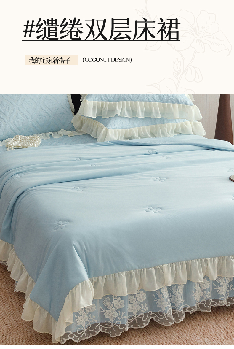 (总)好儿喜家纺 2024新款伊芙琳夏被凉席床裙四件套,浅绿,橄榄绿,奶白,浅粉,浅蓝